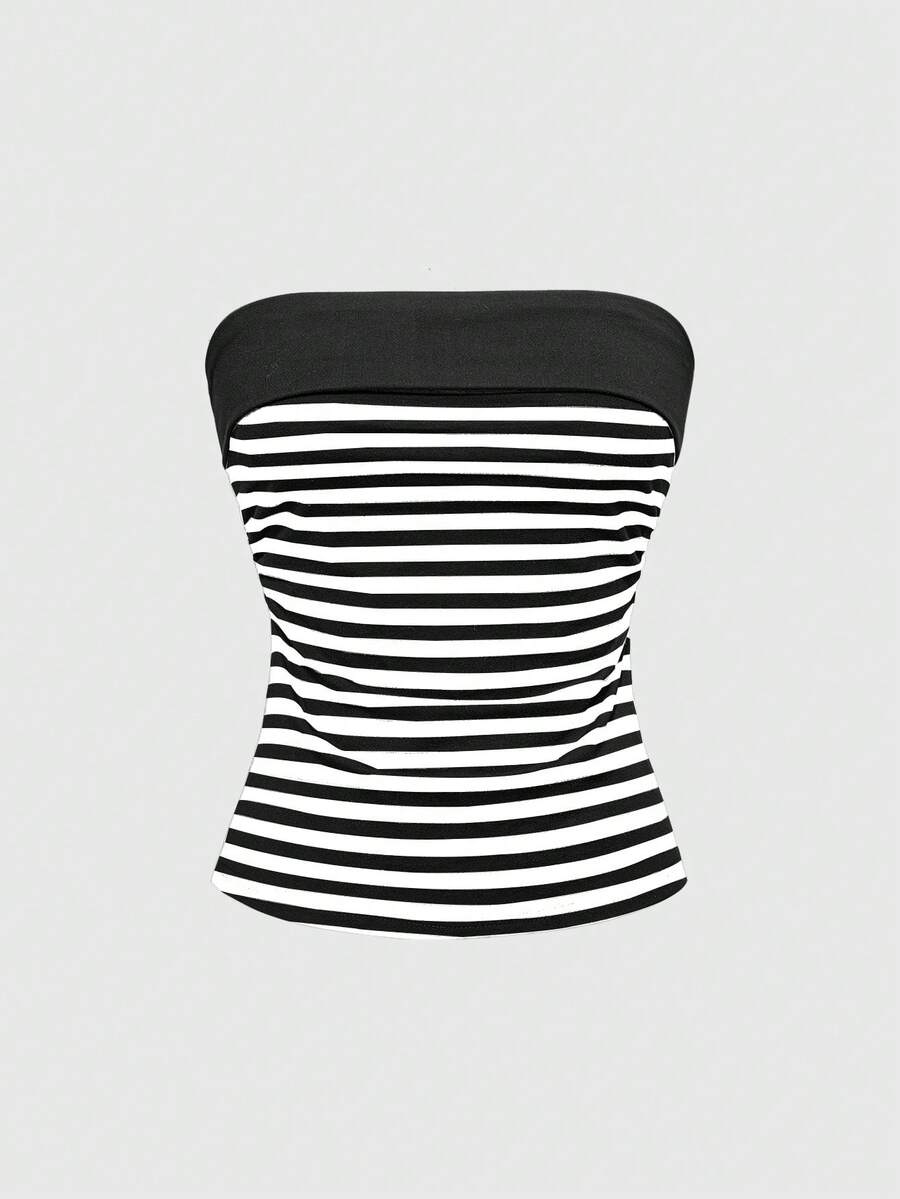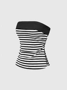 Grunge Punk Y2K Subculture Women Summer Crop Top, Form-Fitting Striped Patchwork Design With Slit Hem