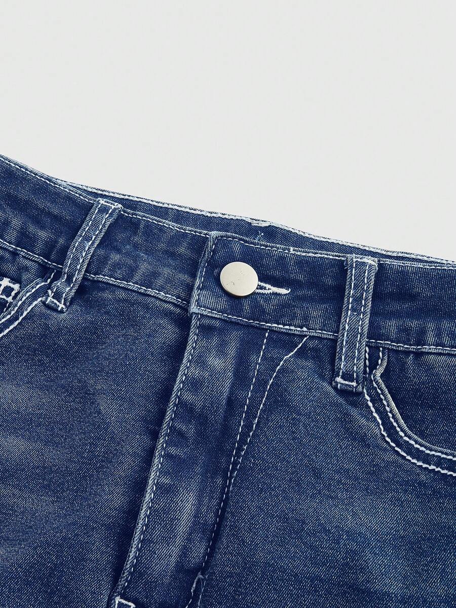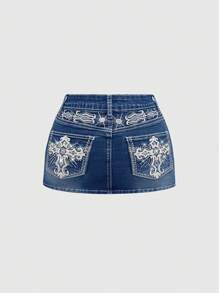 Grunge Punk Y2K Vintage Millennium Babe Cross Wings Embroidery Pocket Tight Fit Plus Size Denim Mini Skirt