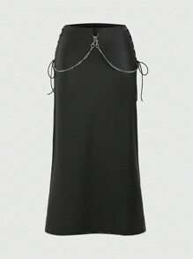 Grunge Punk Y2k Sexy Waist Chain & Side Tie High Slit Skirt For Women