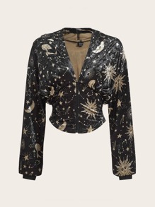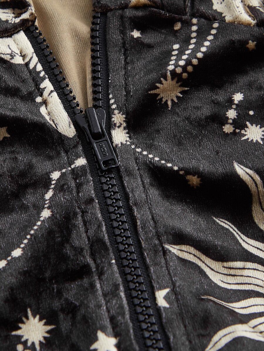 Grunge Skull & Galaxy Print Zip Up Drop Shoulder Hoodie