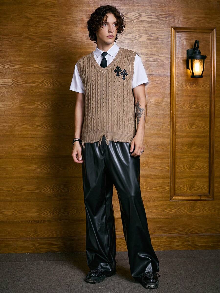Academia Guys 1pc Cross Pattern Sweater Vest