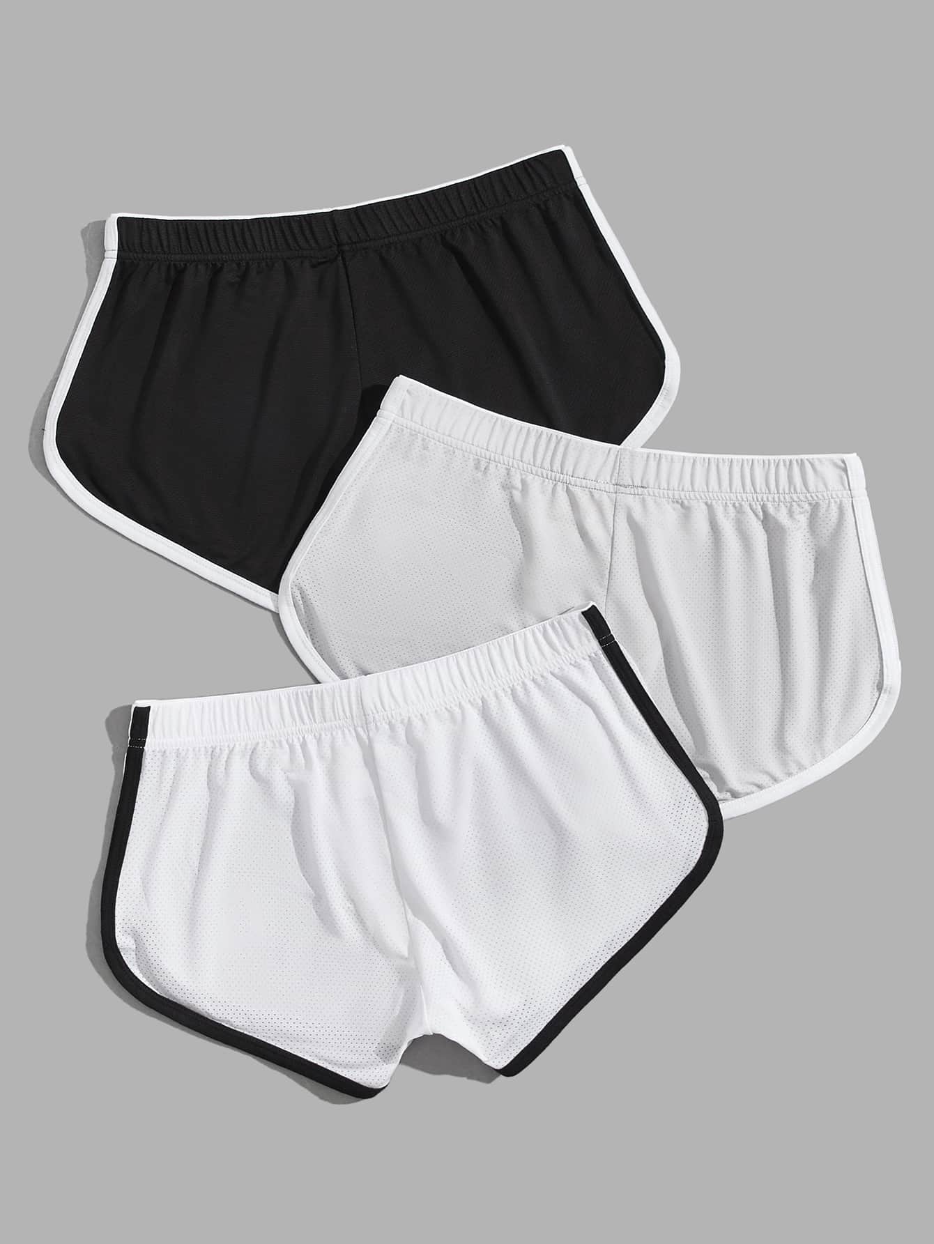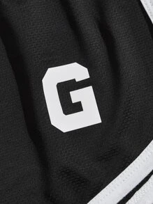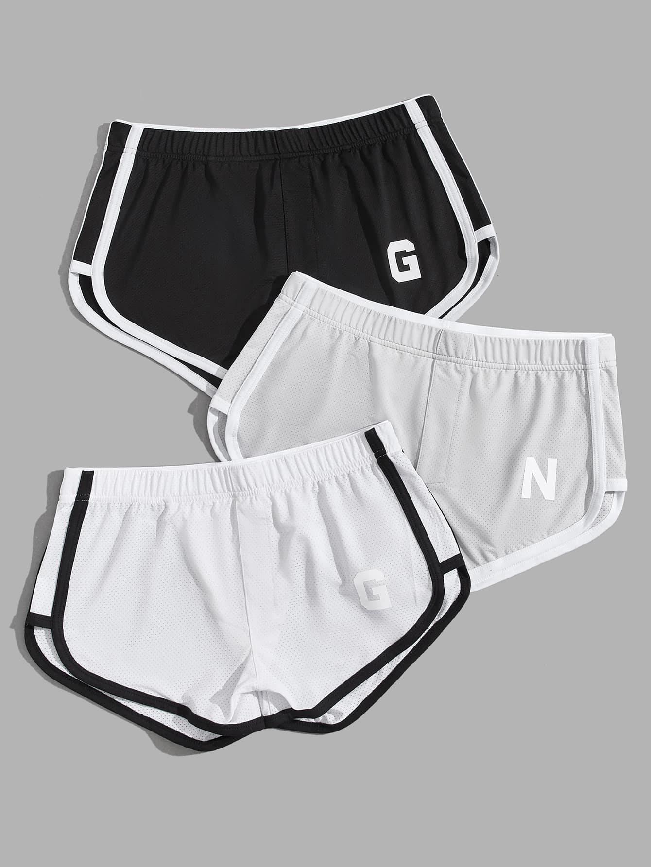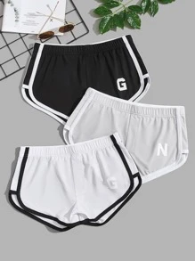 Guys 3pcs Letter Graphic Contrast Binding Sleep Shorts