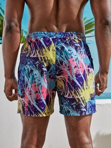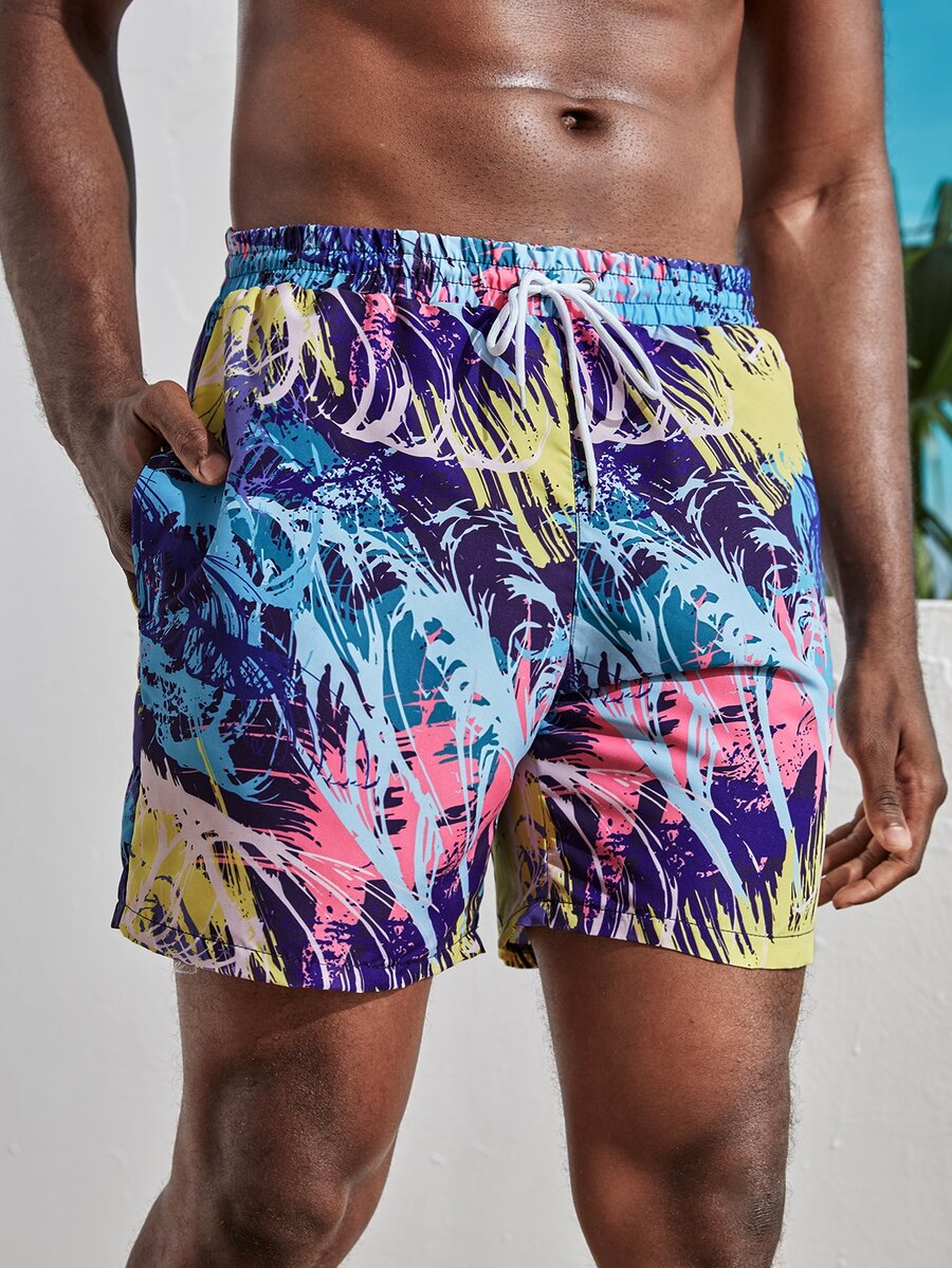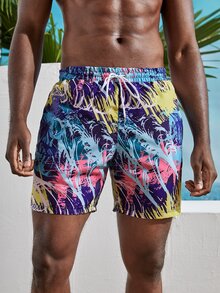 Guys Allover Print Drawstring Swim Trunks