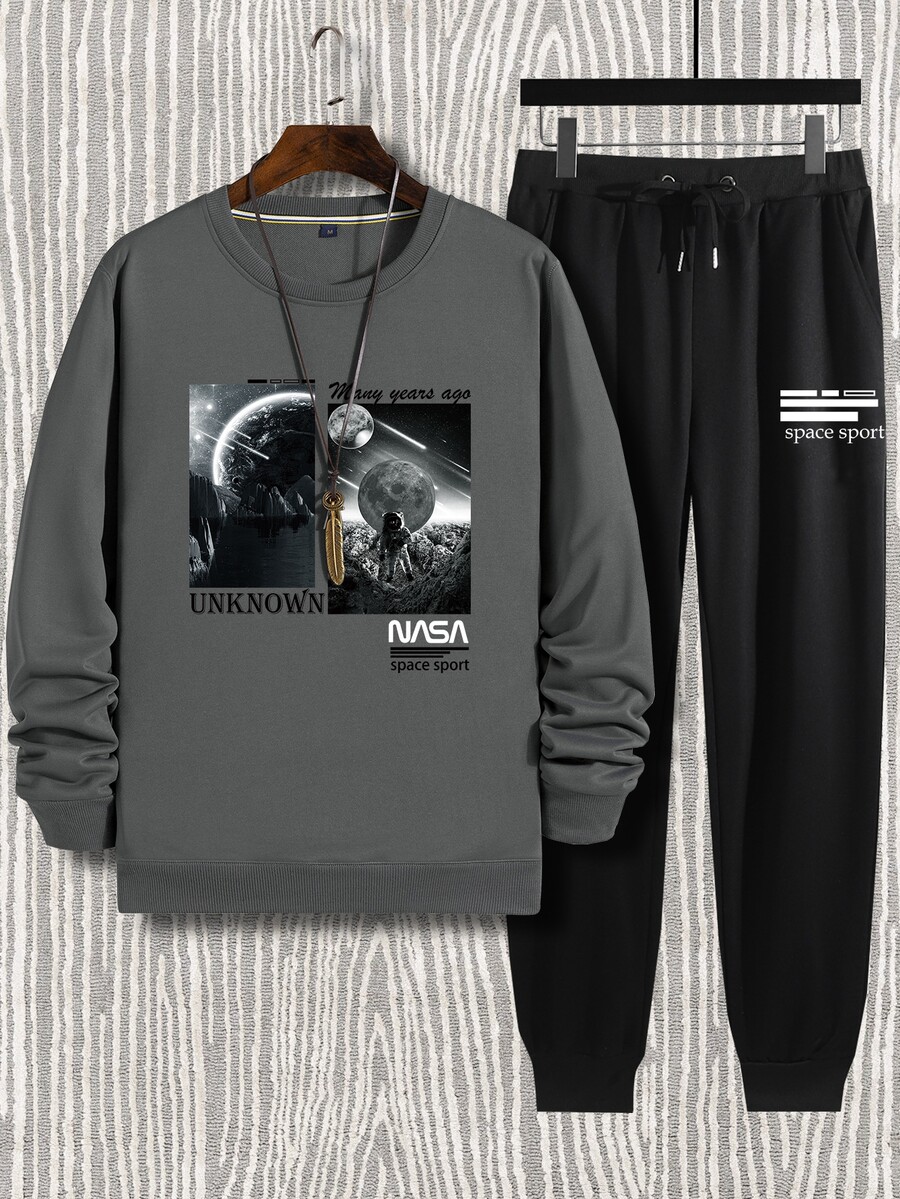 Guys Astronaut & Letter Graphic Sweatshirt & Drawstring Waist Sweatpants