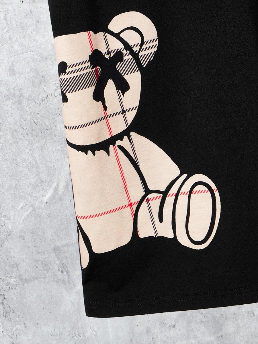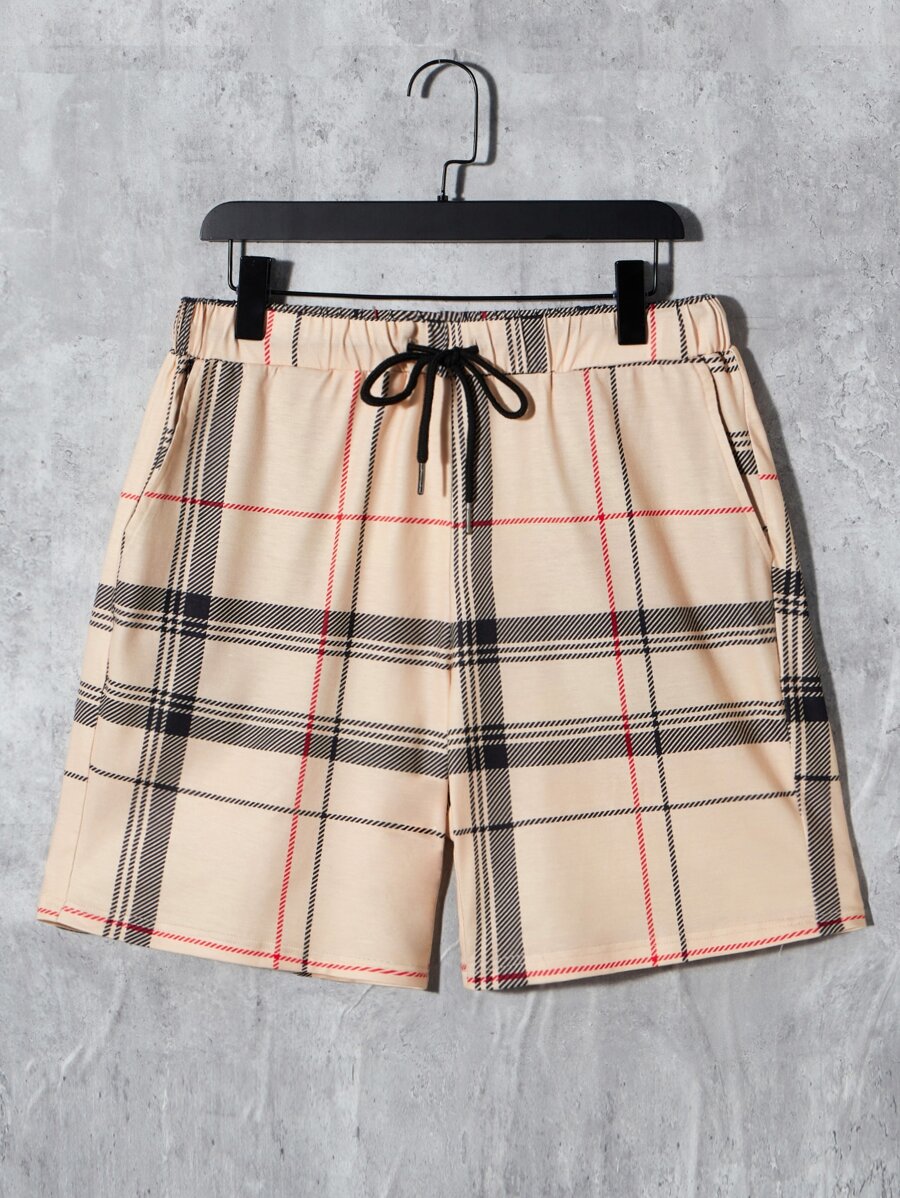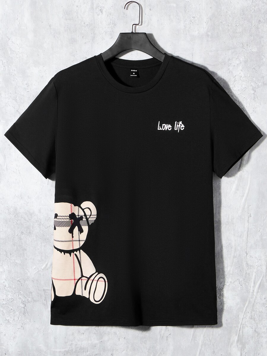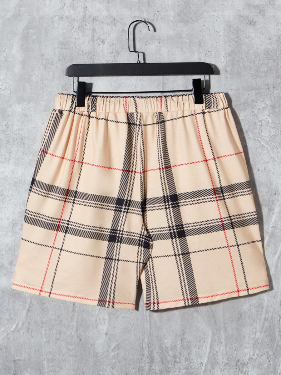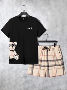 Guys Bear & Letter Graphic Tee & Plaid Drawstring Waist Shorts