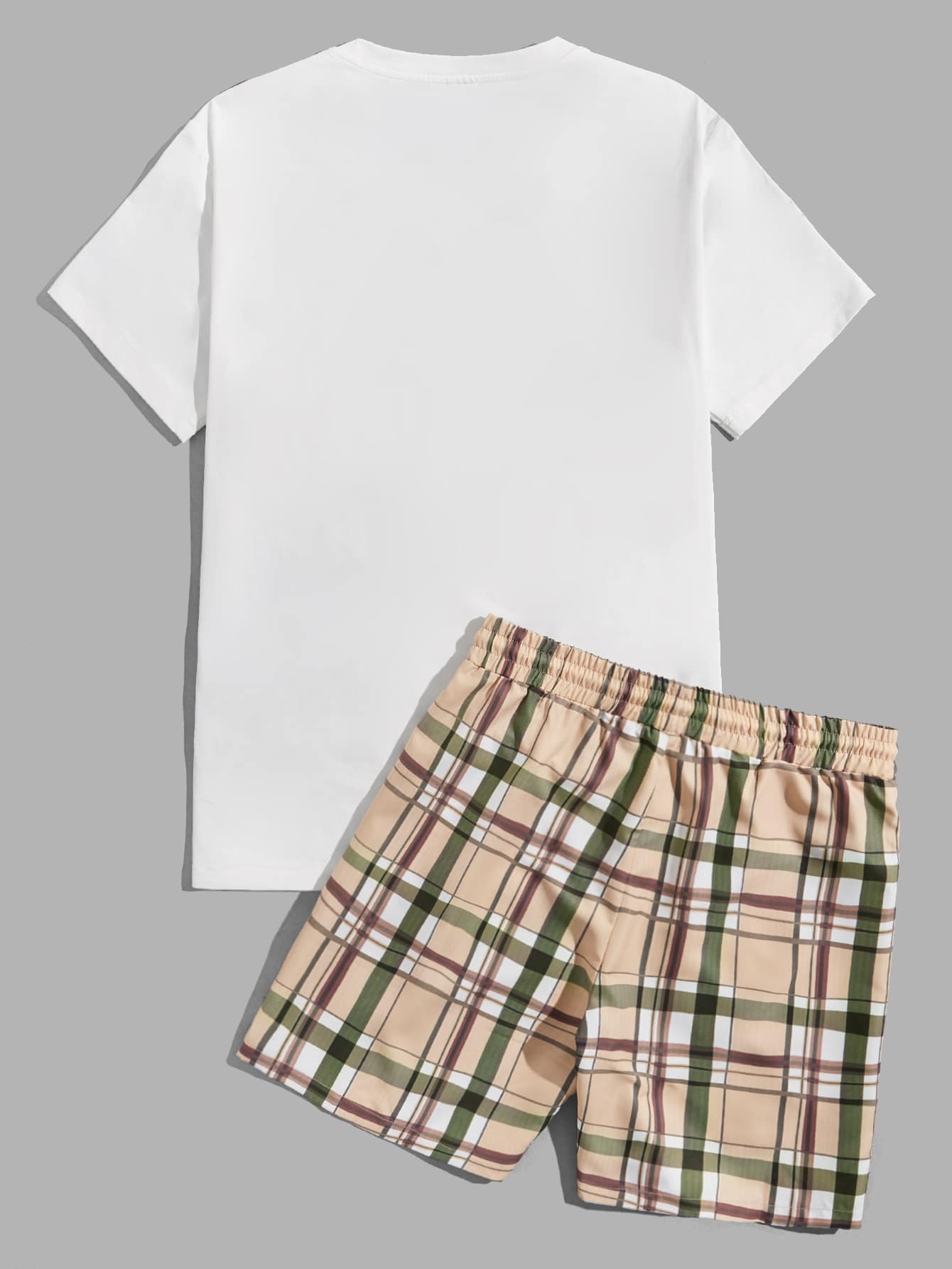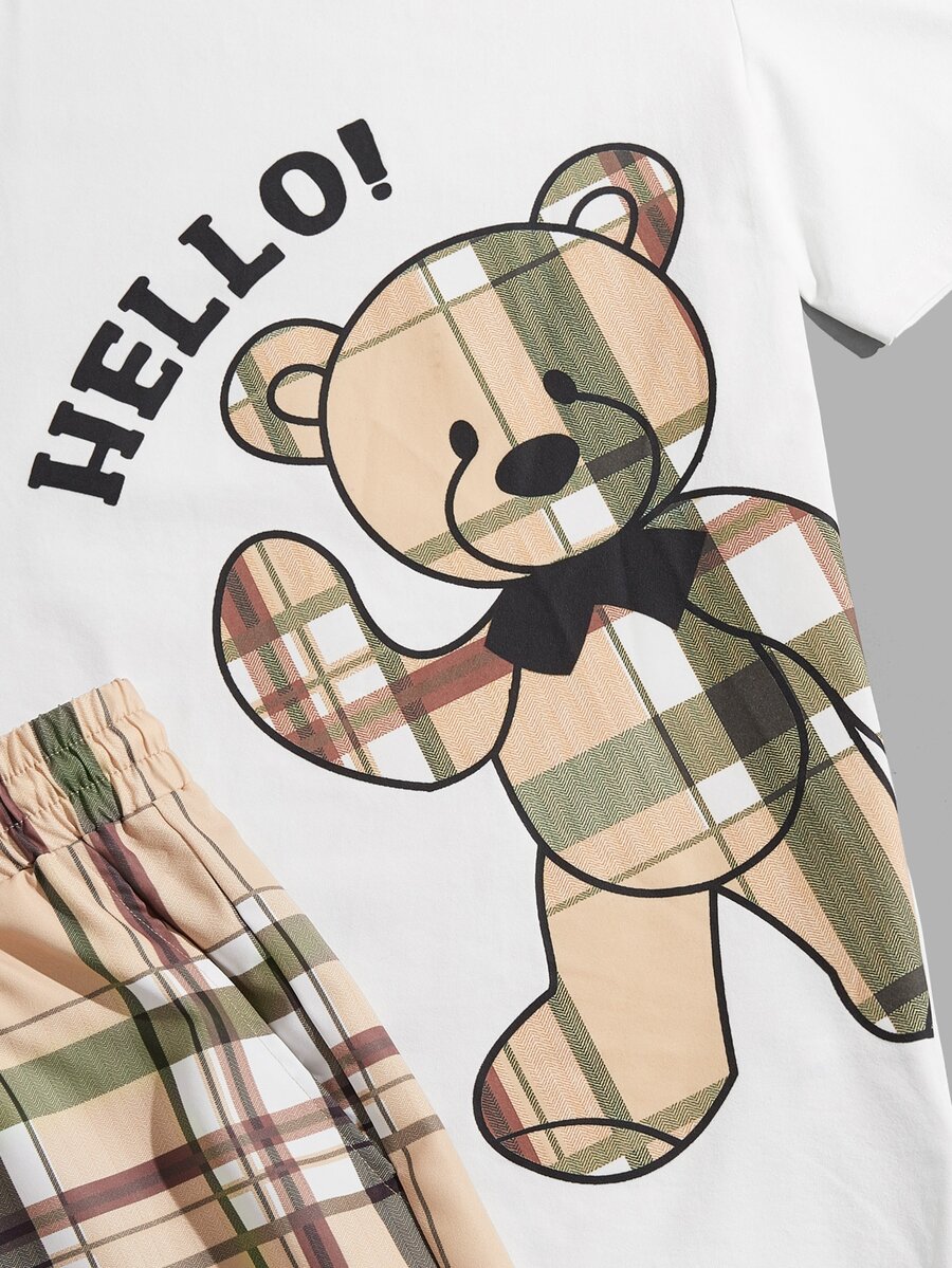 Guys Bear & Letter Graphic Tee & Plaid Shorts