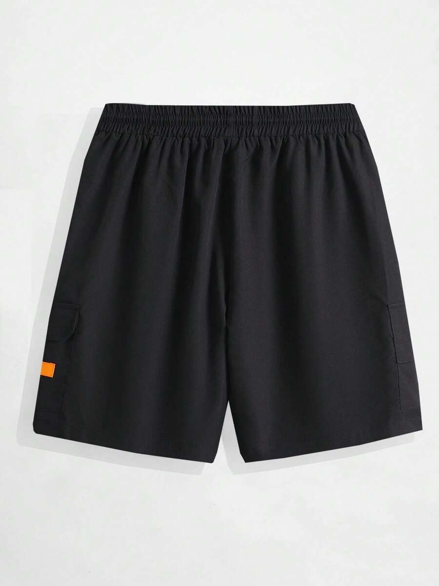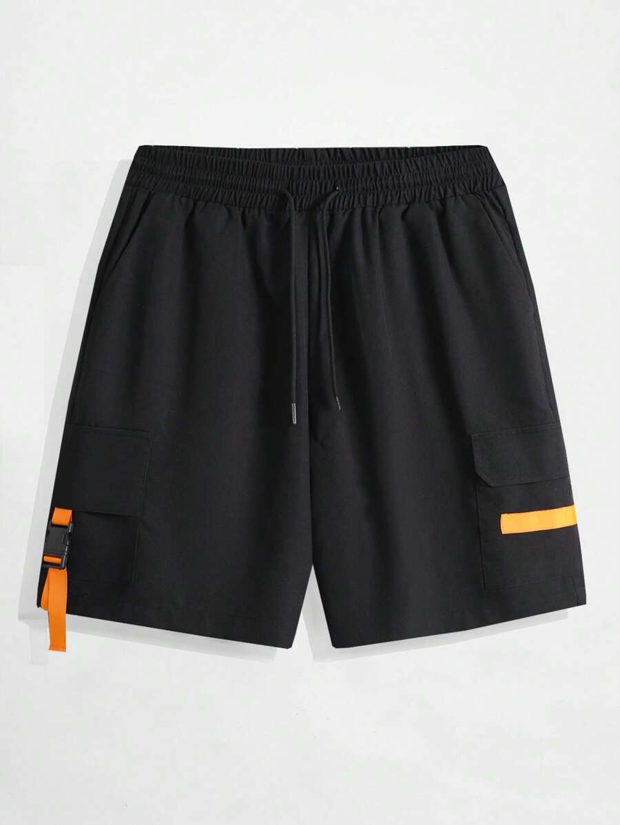 Guys Buckle Detail Flap Pocket Drawstring Waist Cargo Shorts