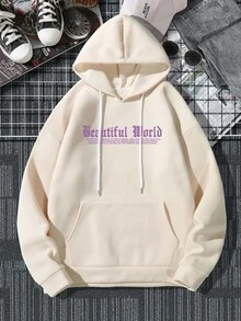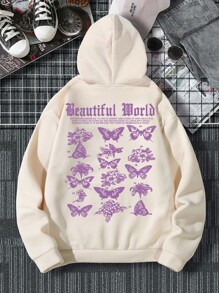 Guys Butterfly & Letter Graphic Drawstring Thermal Lined Hoodie