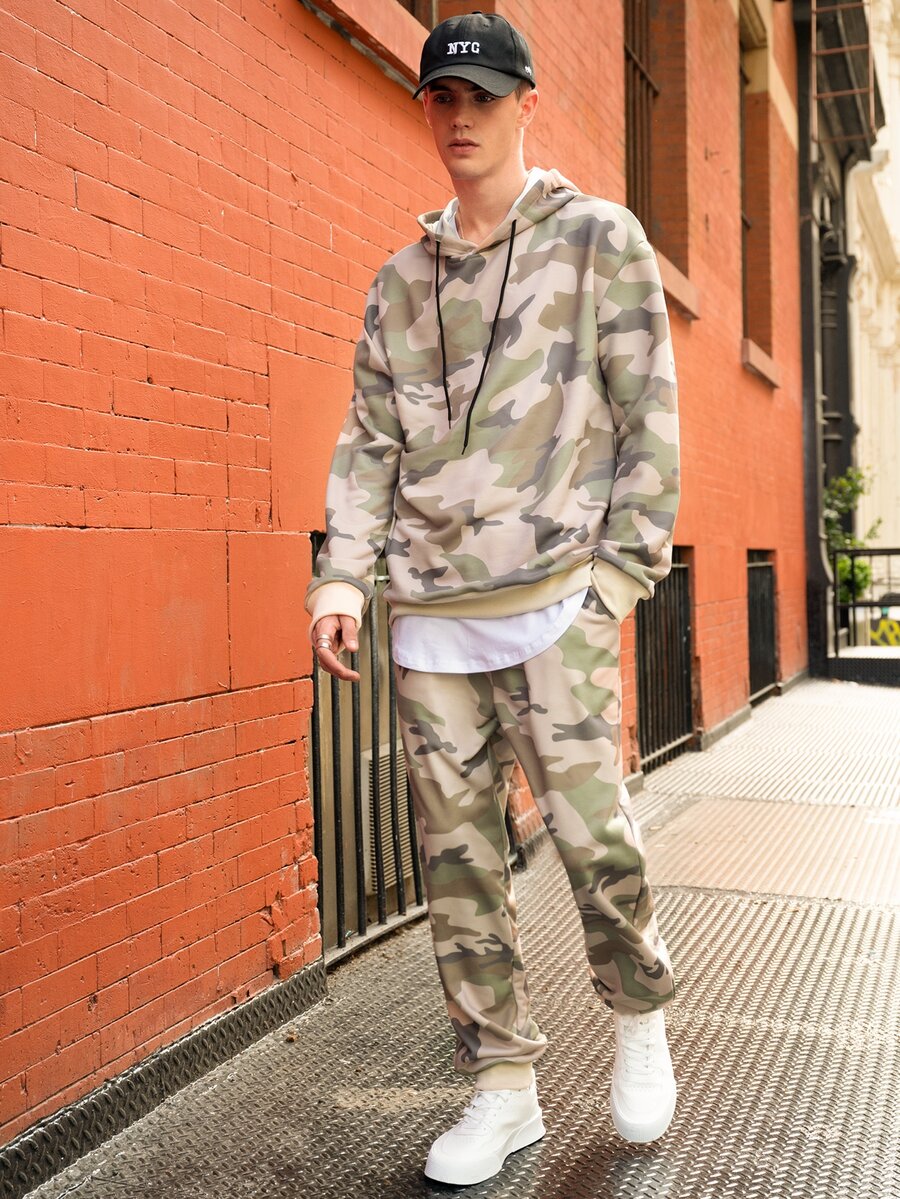 Guys Camo Print Drawstring Hoodie & Sweatpants