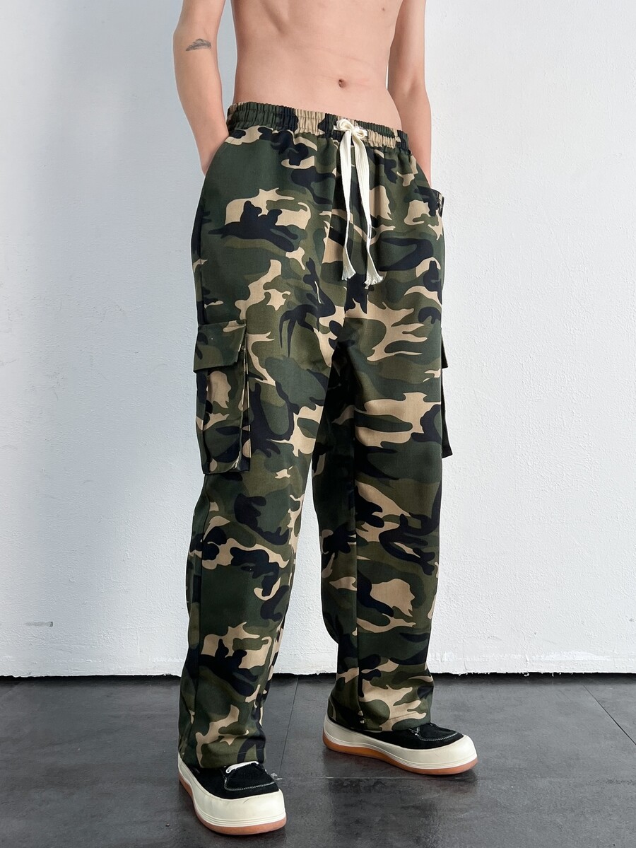 Guys Camo Print Flap Pocket Drawstring Waist Cargo Pants