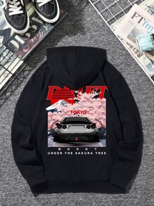 Guys Car & Letter Graphic Thermal Lined Hoodie