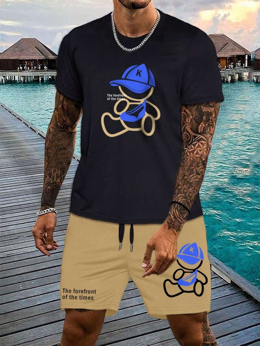 Guys Cartoon Graphic Tee & Drawstring Waist Shorts