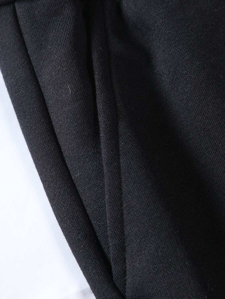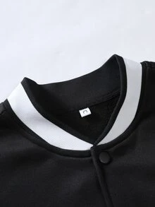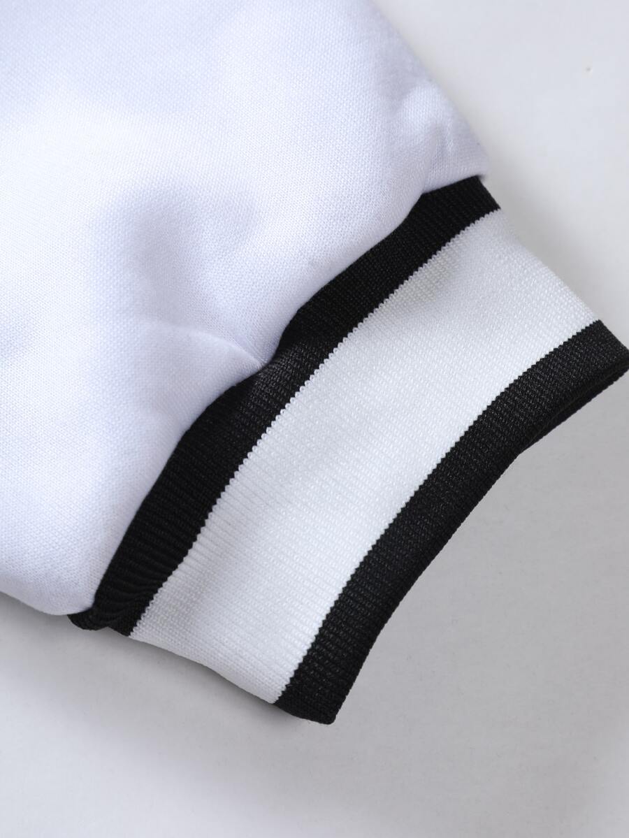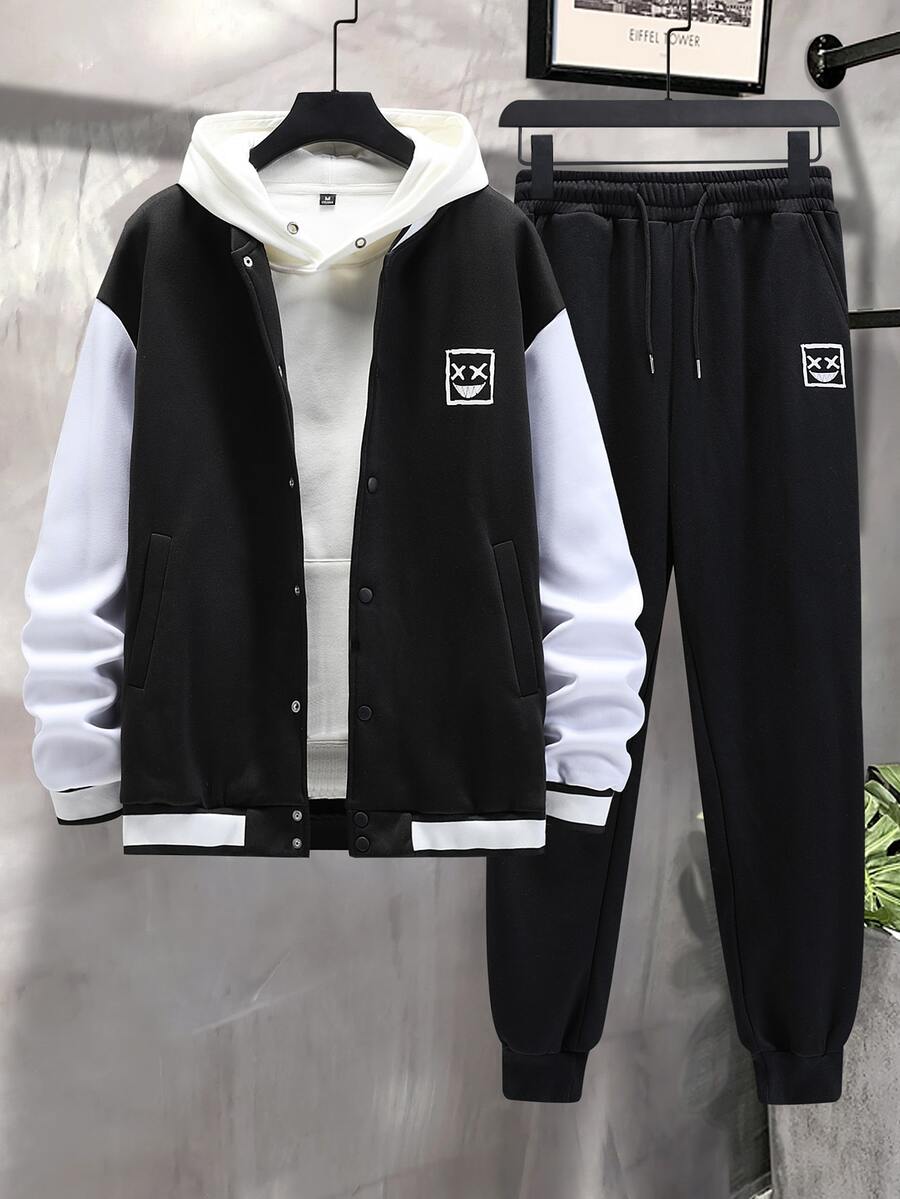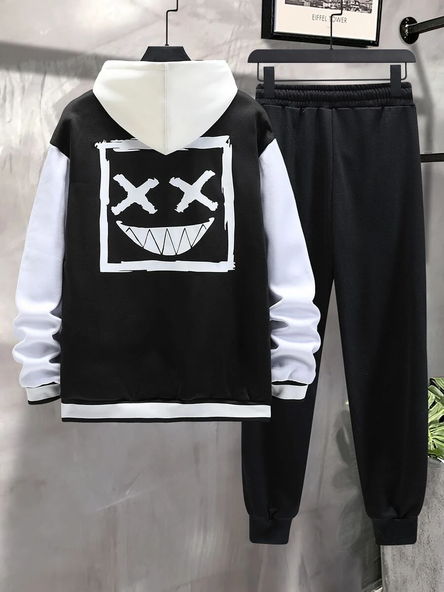 Guys Cartoon Graphic Two Tone Varsity Jacket & Drawstring Waist Sweatpants Without Hoodie