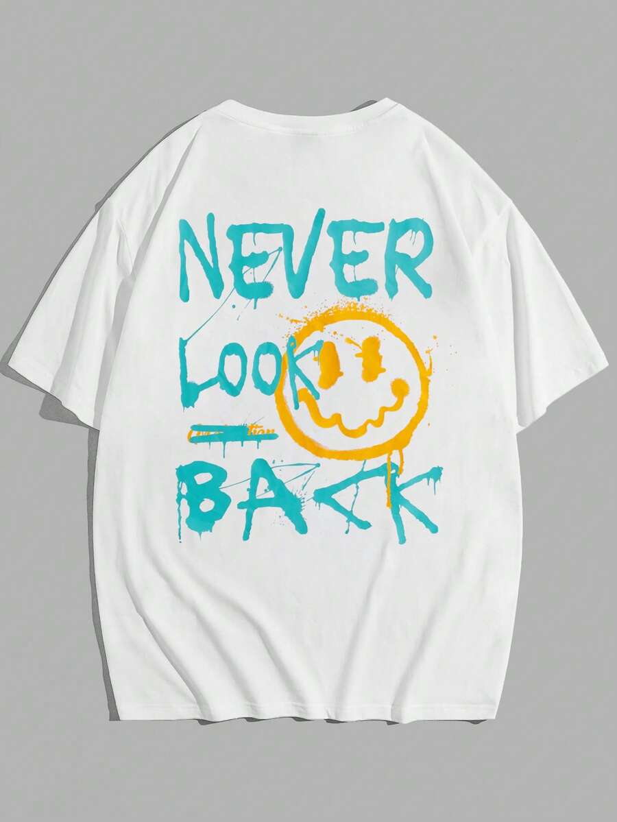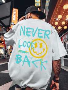 Guys Cartoon & Slogan Graphic Drop Shoulder Tee