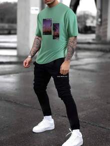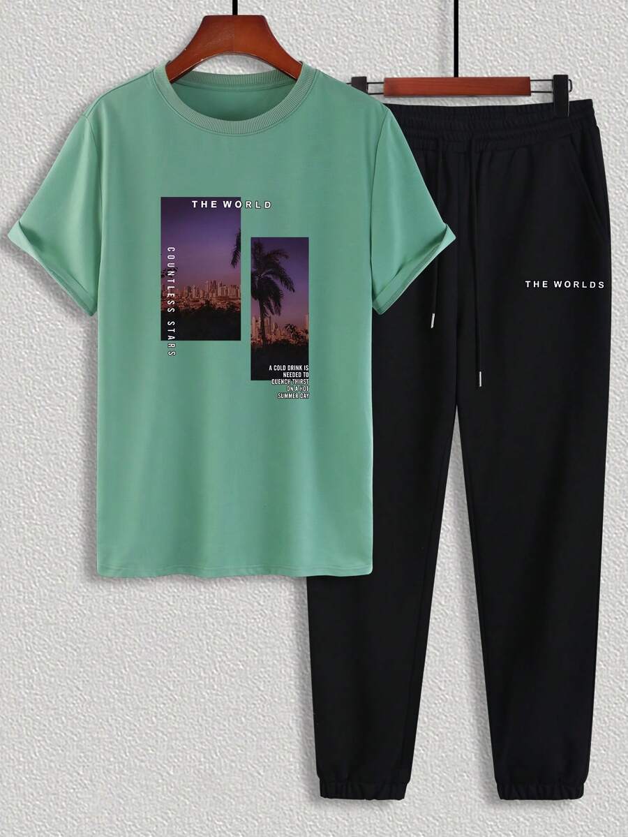 Guys Coconut Tree & Slogan Graphic Tee & Drawstring Waist Sweatpants