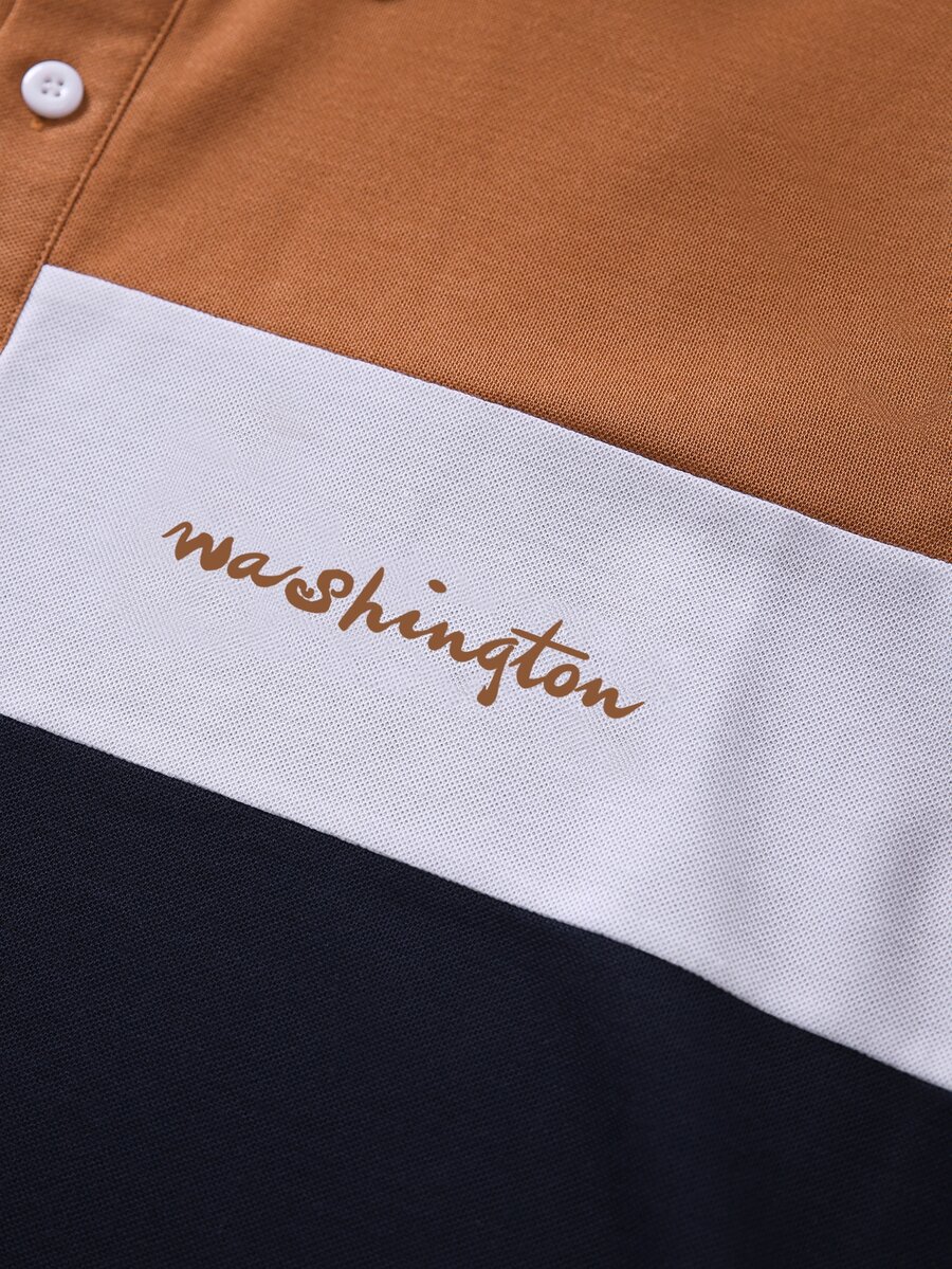 Guys Color-block Letter Graphic Polo Shirt