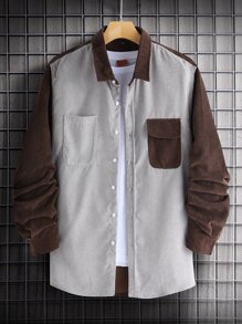 Guys Colorblock Button Front Corduroy Coat