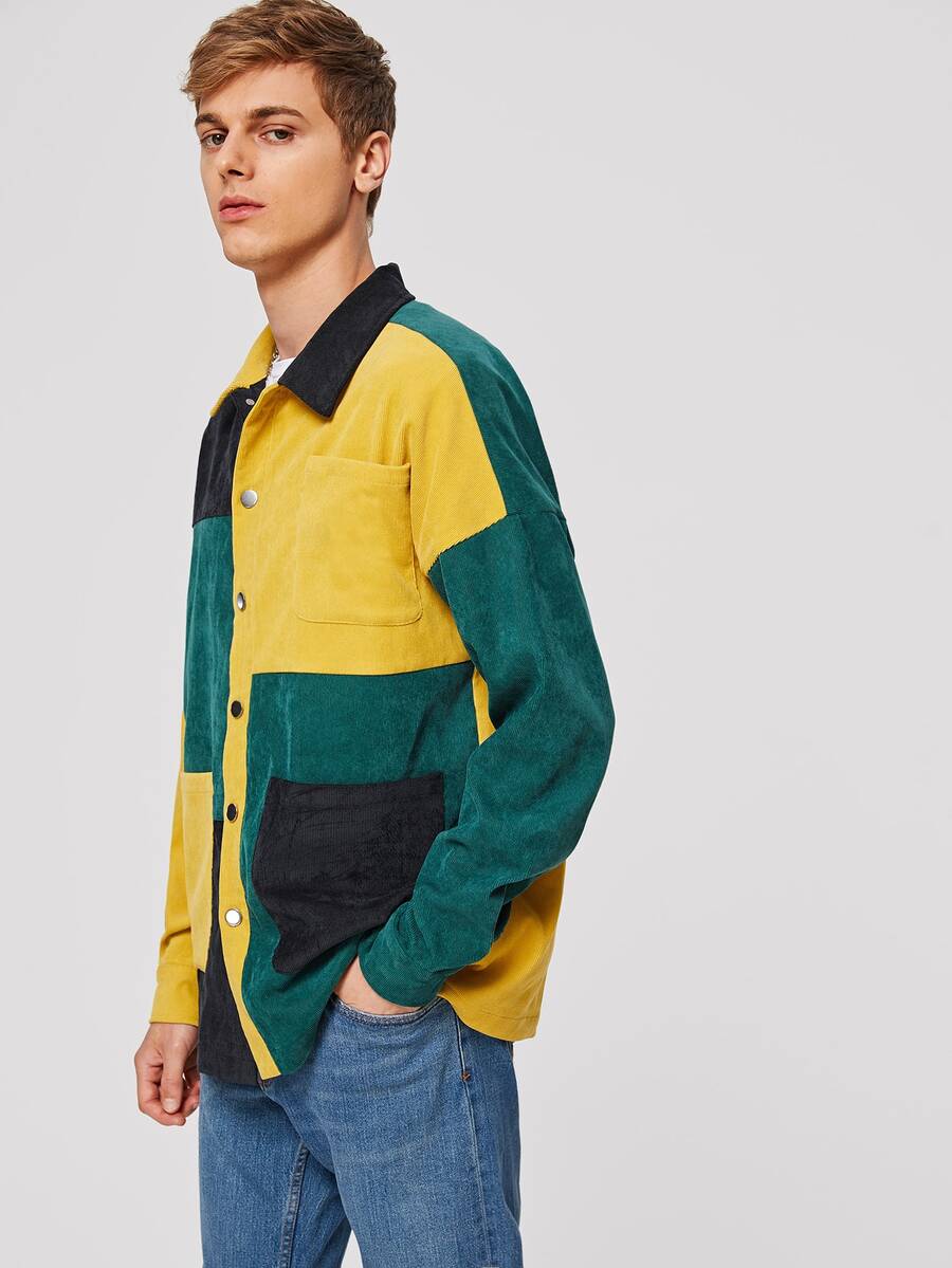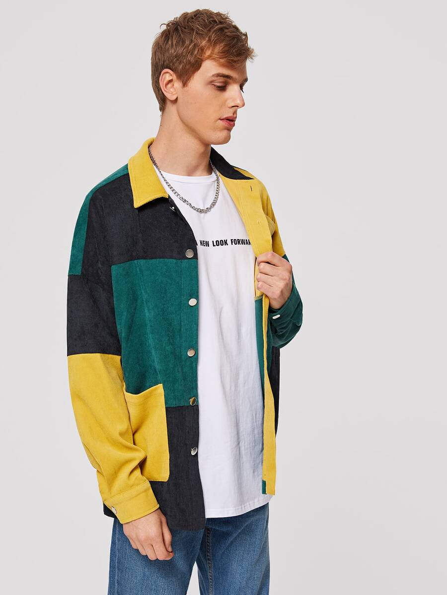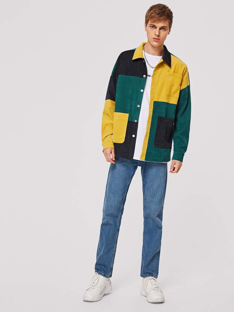 Guys Colorblock Patch Pocket Corduroy Jacket