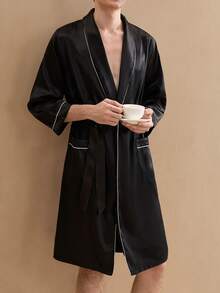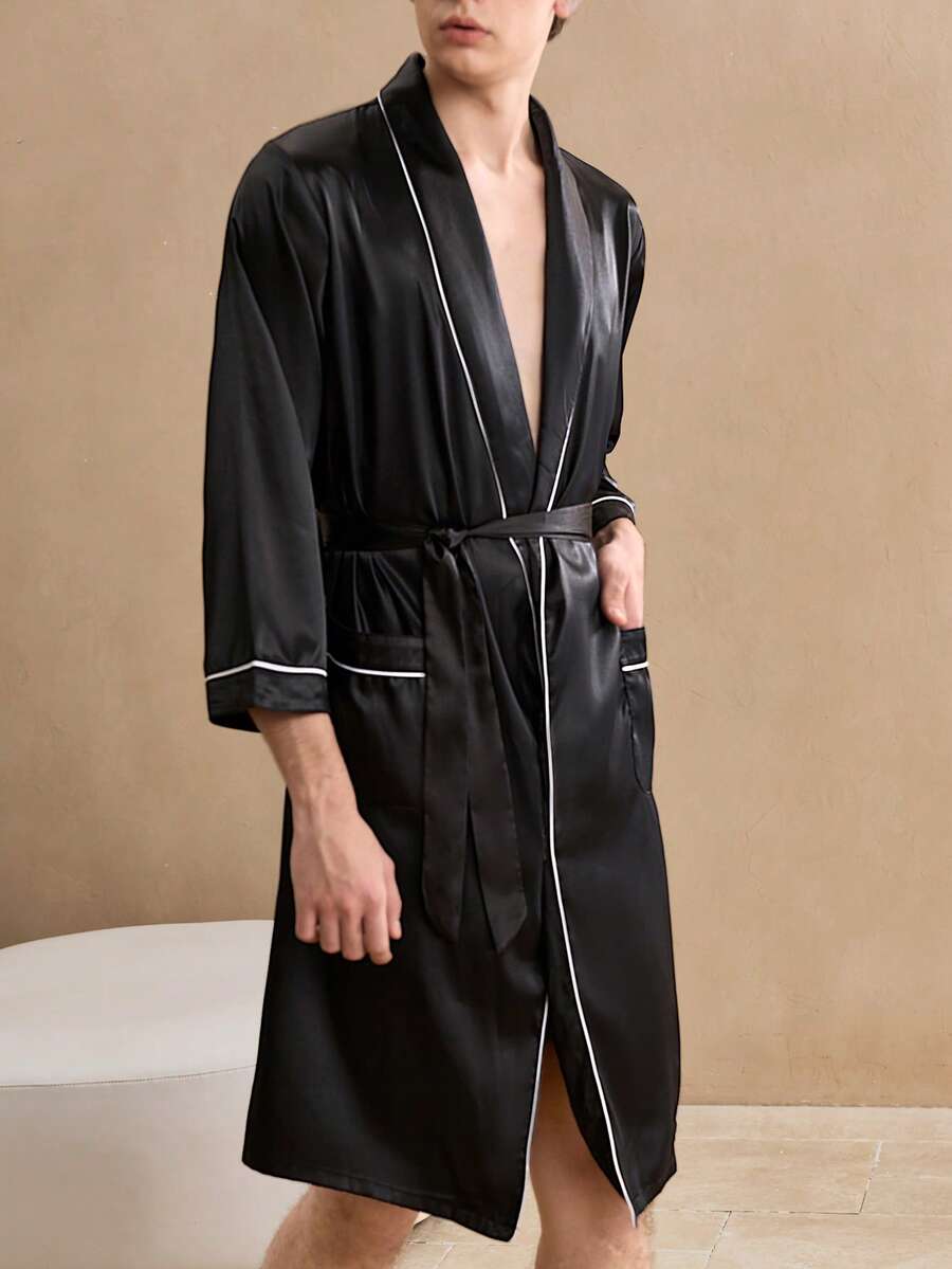 Guys Contrast Binding Belted Satin Robe