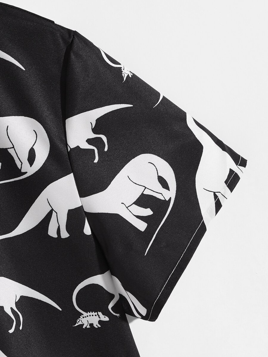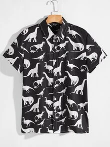 Guys Dinosaur Print Button Up Shirt
