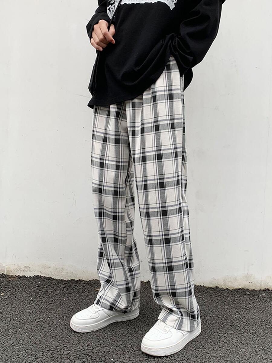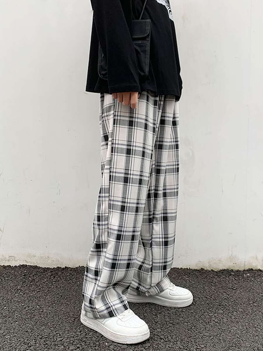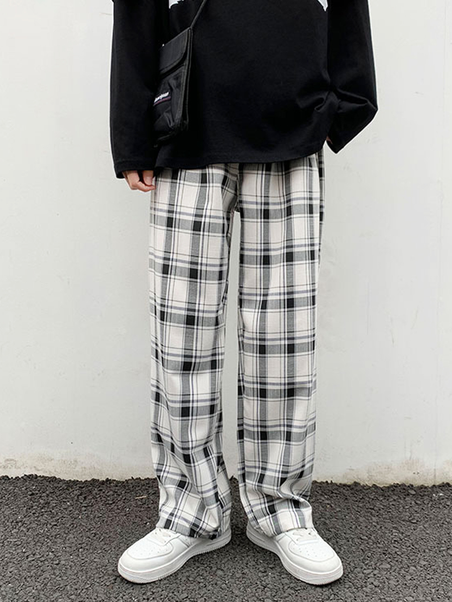 Guys Drawstring Waist Plaid Pants