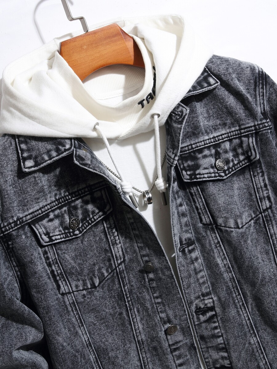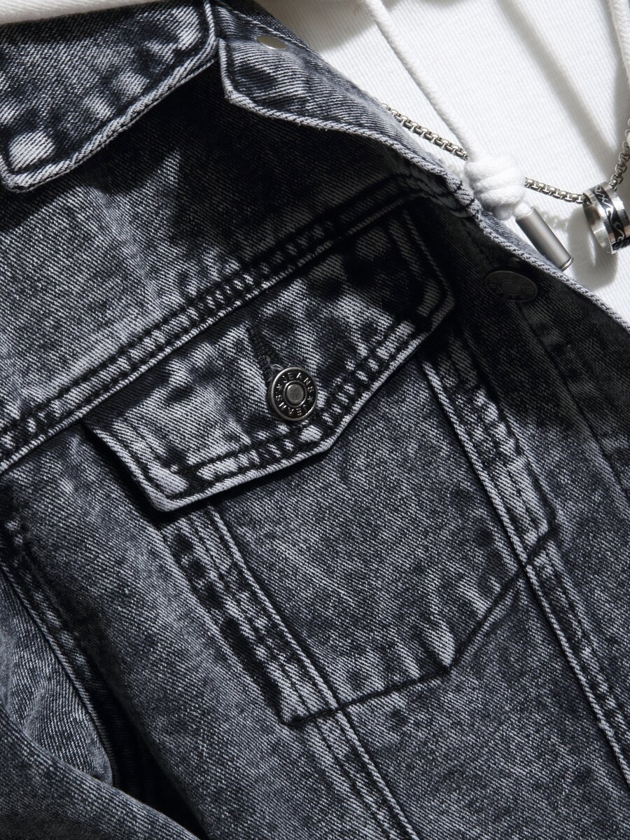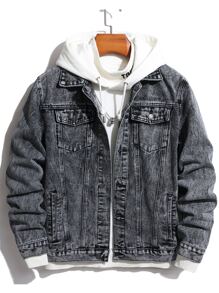 Guys Flap Pocket Denim Jacket Without Hoodie