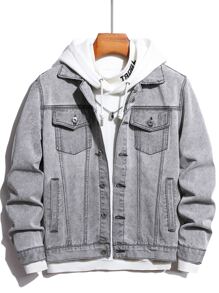 Guys Flap Pocket Denim Jacket Without Hoodie