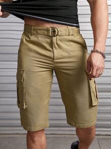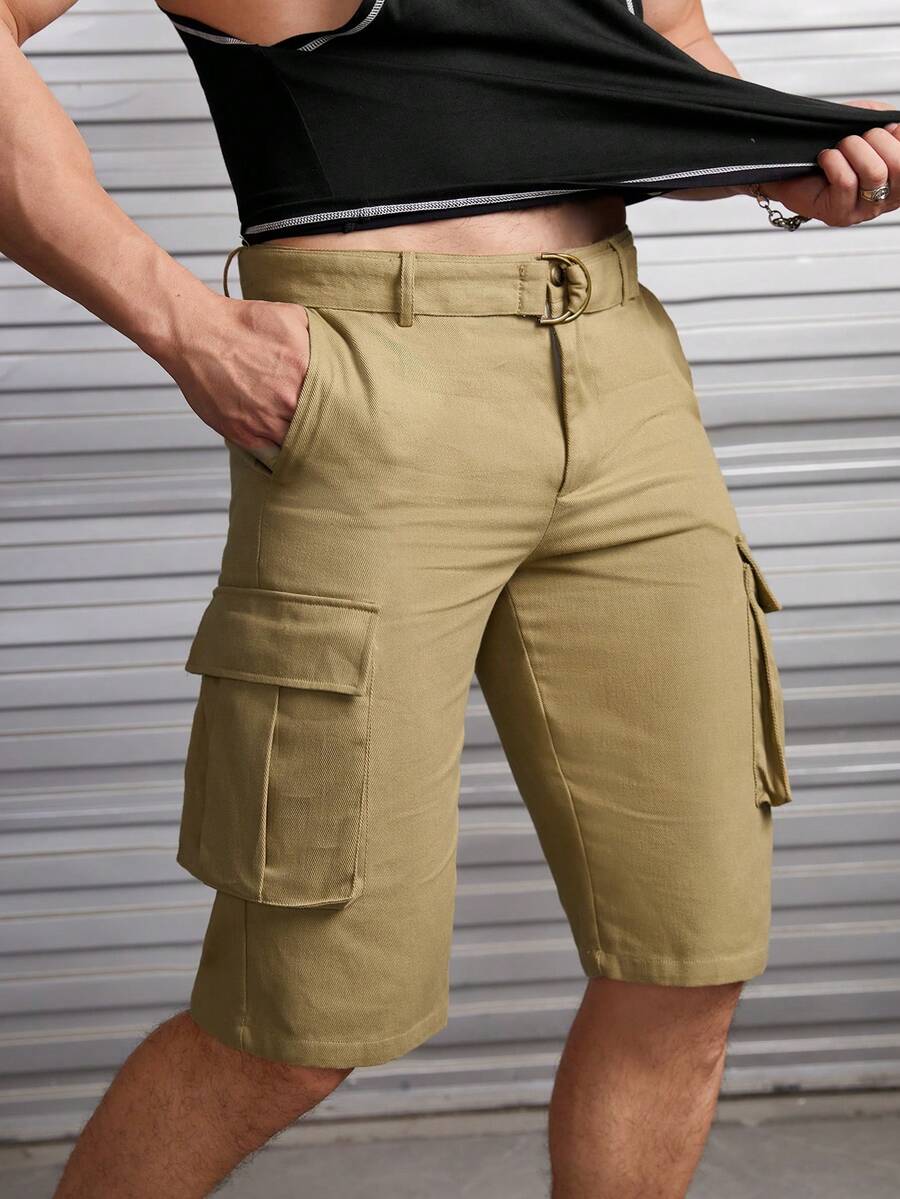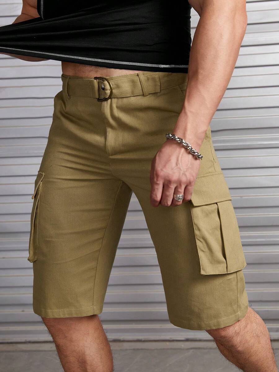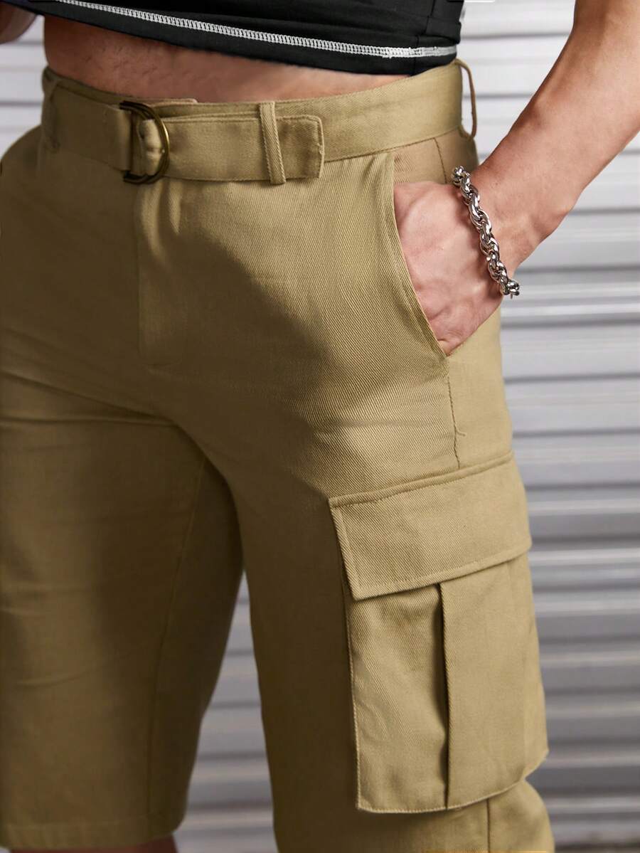 GENTILAND Guys Flap Pocket Side Belted Cargo Shorts