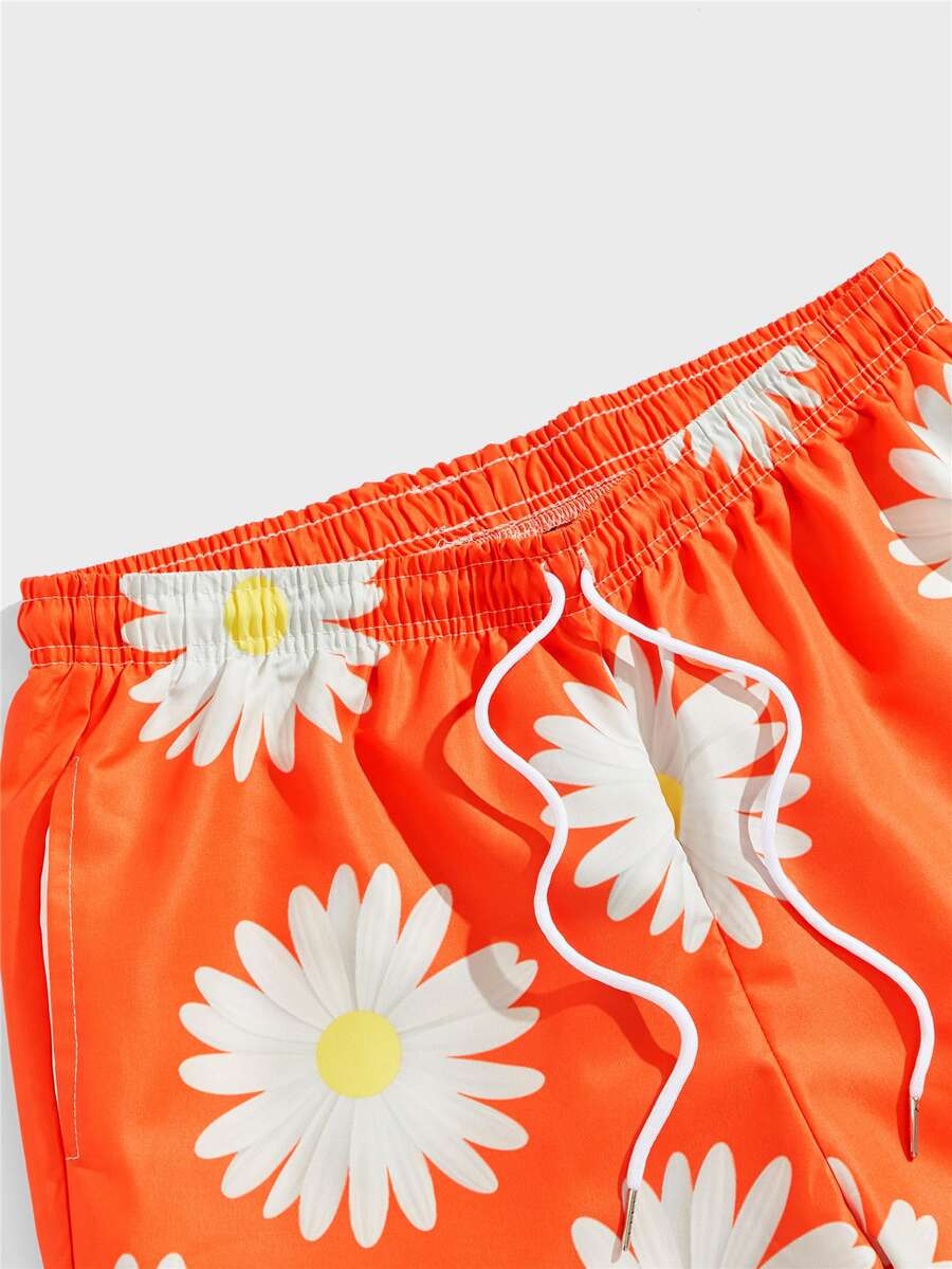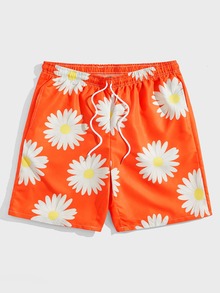 Guys Floral Print Drawstring Waist Shorts