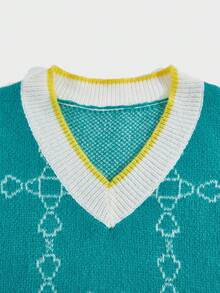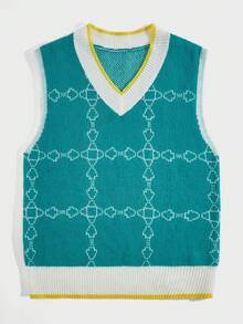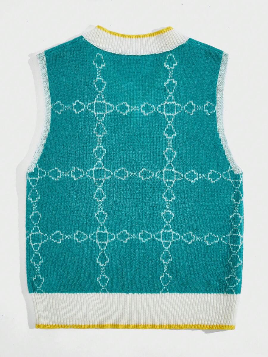 Street Life Guys Geo Pattern Contrast Trim Sweater Vest