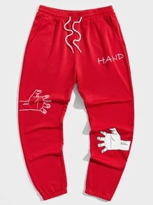 Guys Hand Cartoon Graphic Drawstring Sweatpants
