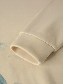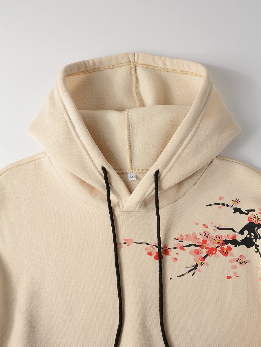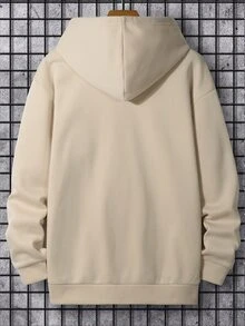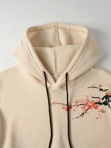 Guys Landscape & Chinese Letter Graphic Thermal Lined Drawstring Hoodie