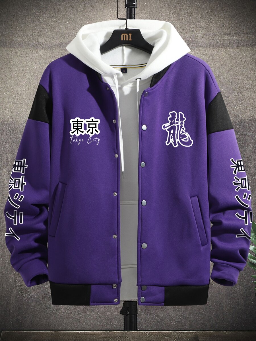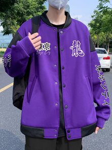 Guys Letter Graphic Colorblock Drop Shoulder Bomber Jacket