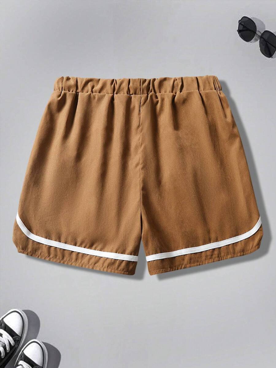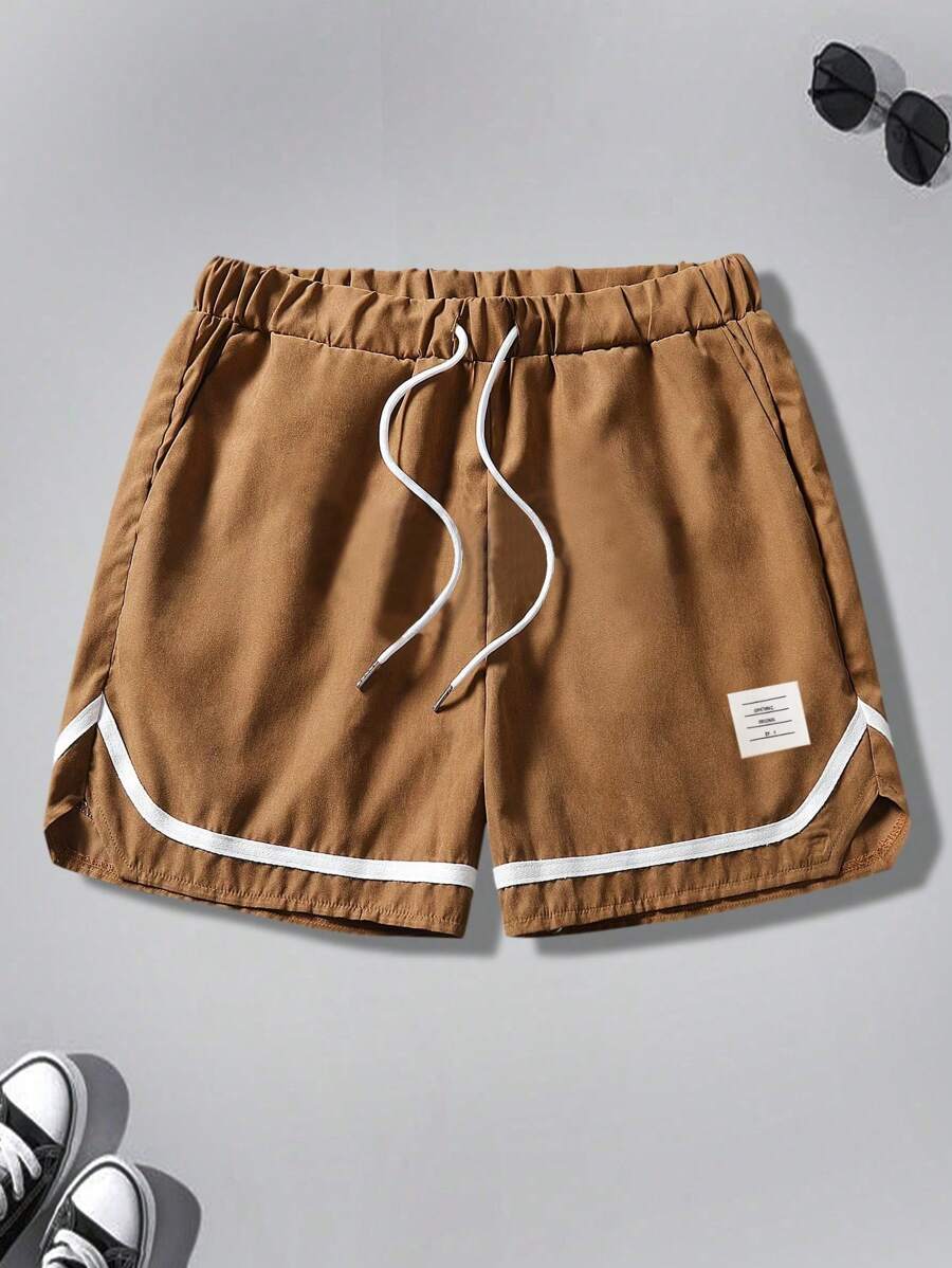 Guys Letter Graphic Contrast Binding Drawstring Waist Shorts