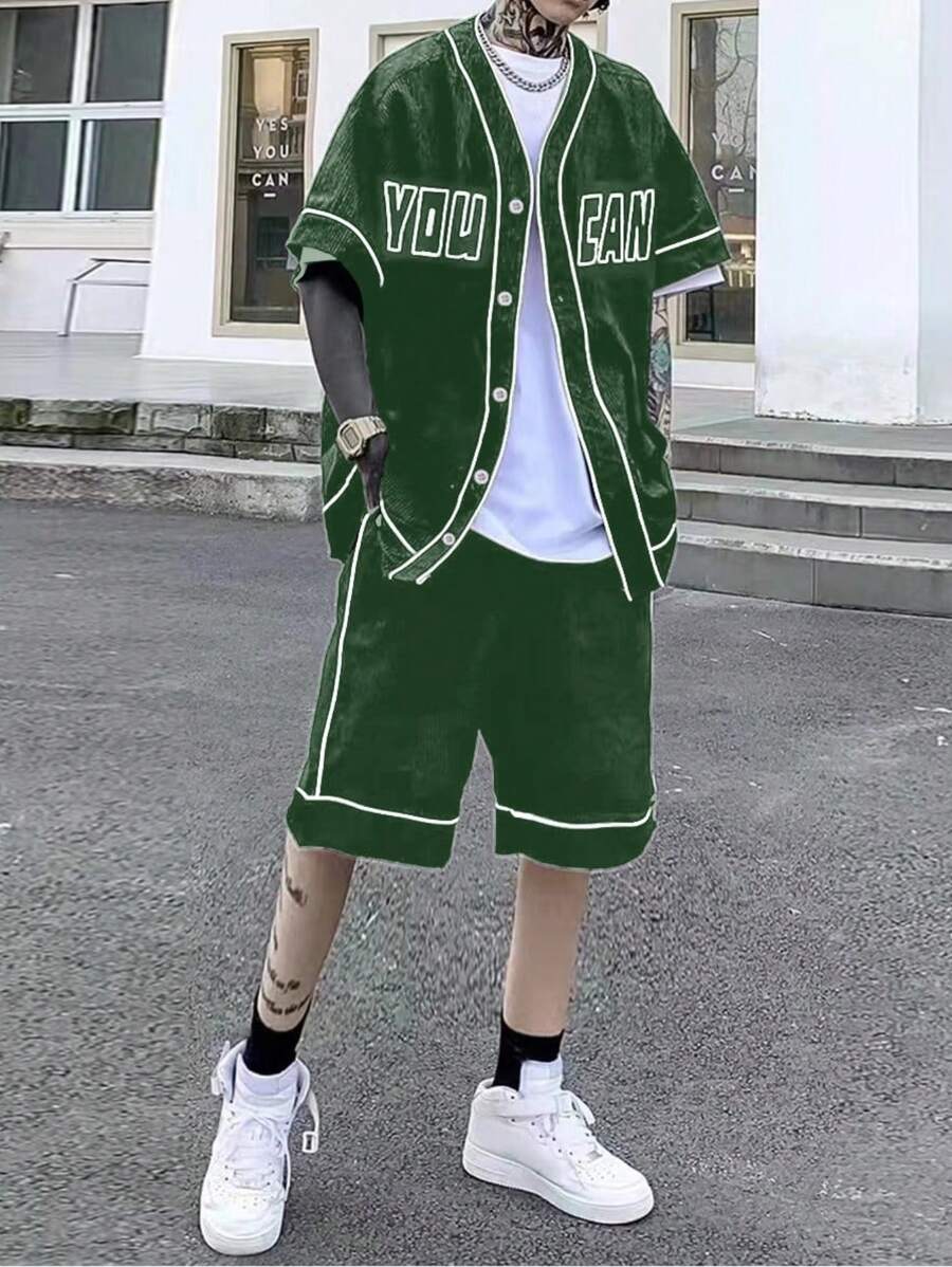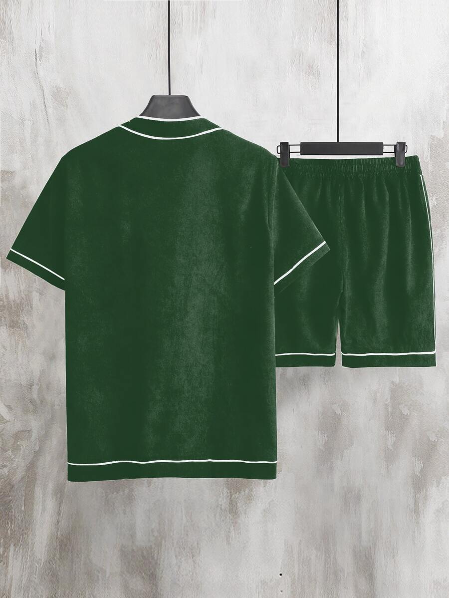 Guys Letter Graphic Contrast Piping Shirt & Shorts