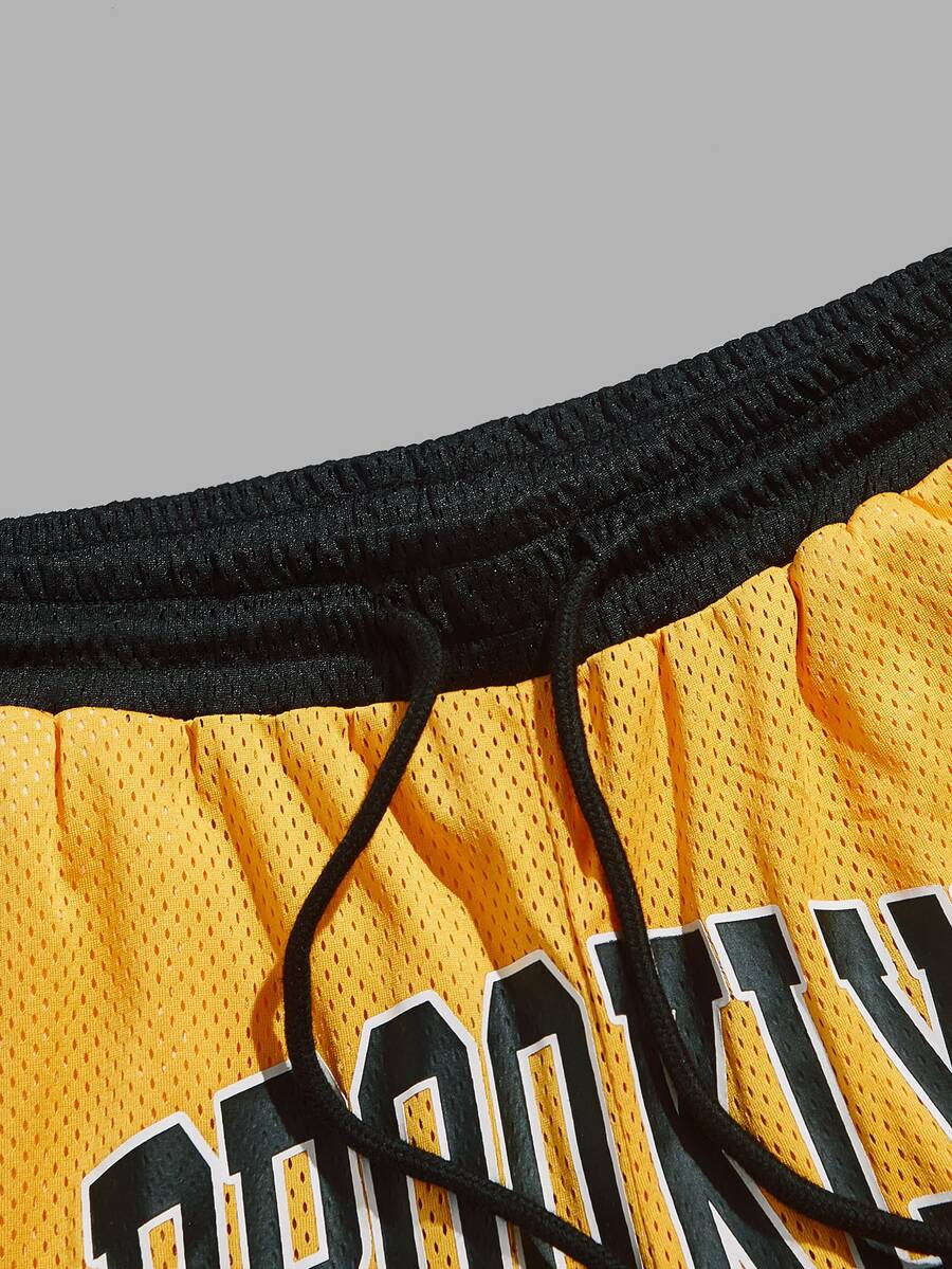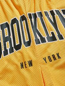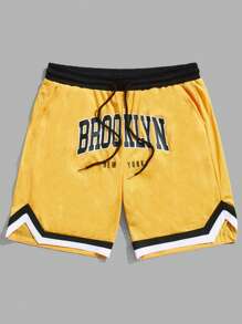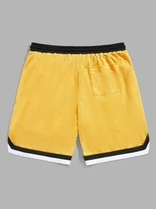 Guys Letter Graphic Contrast Trim Drawstring Waist Shorts