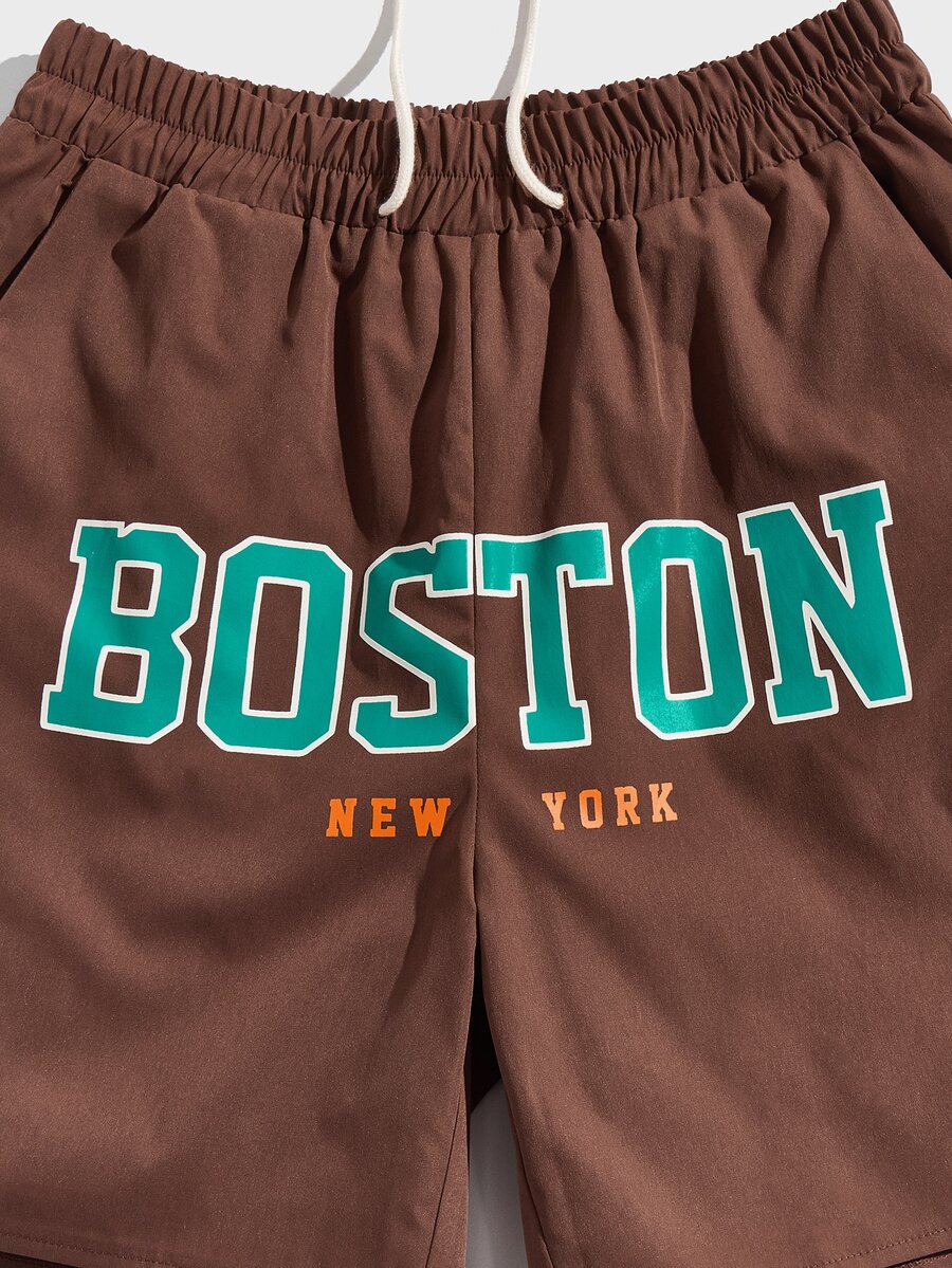 Guys Letter Graphic Drawstring Shorts