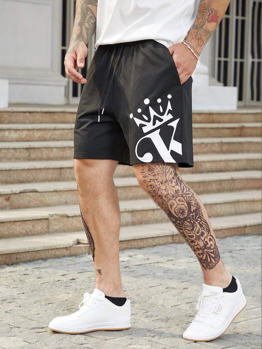 Guys Letter Graphic Drawstring Waist Shorts