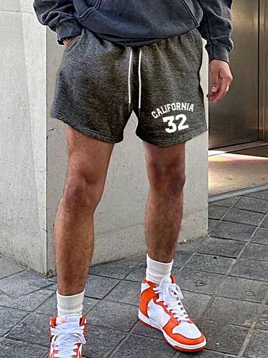 Guys Letter Graphic Drawstring Waist Shorts