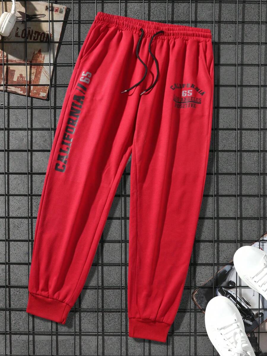 Guys Letter Graphic Drawstring Waist Sweatpants
