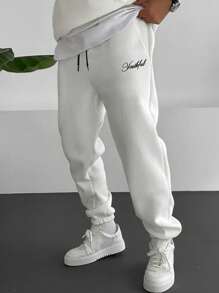 Guys Letter Graphic Drawstring Waist Sweatpants