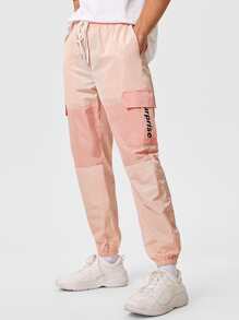 Guys Letter Graphic Flap Pocket Side Wind Pants