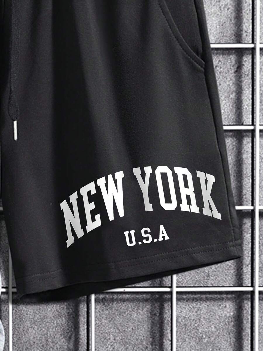Guys Letter Graphic Round Neck Sweatshirt & Shorts