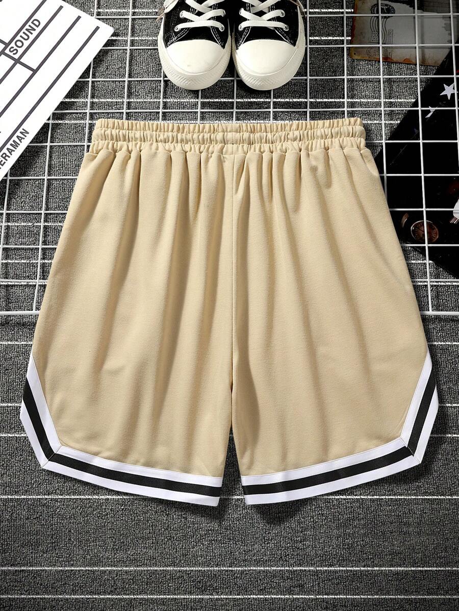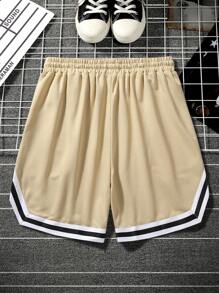 Guys Letter Graphic Striped Trim Drawstring Waist Shorts