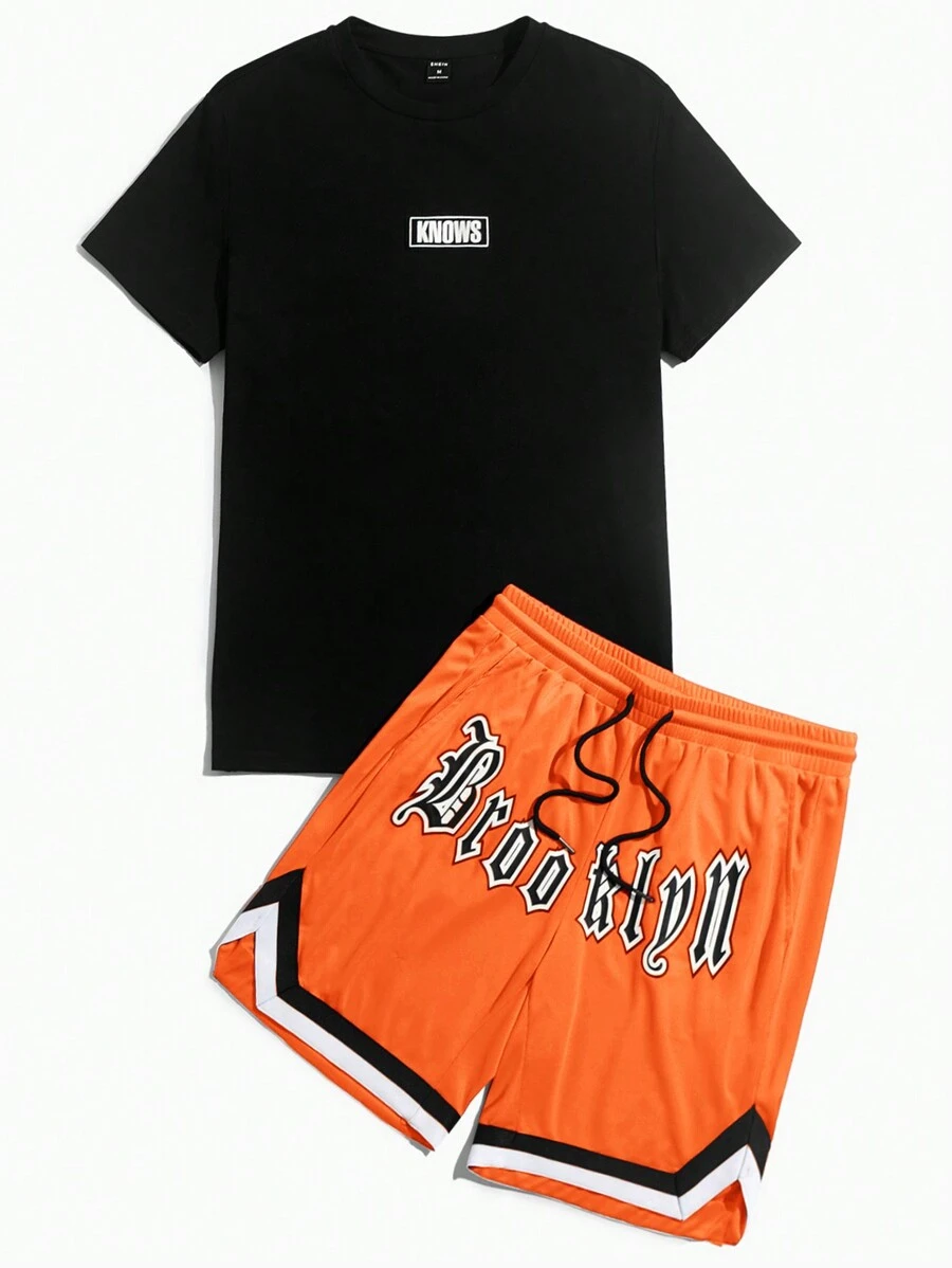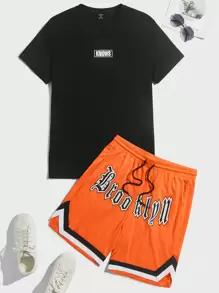 Guys Letter Graphic Tee & Drawstring Waist Shorts