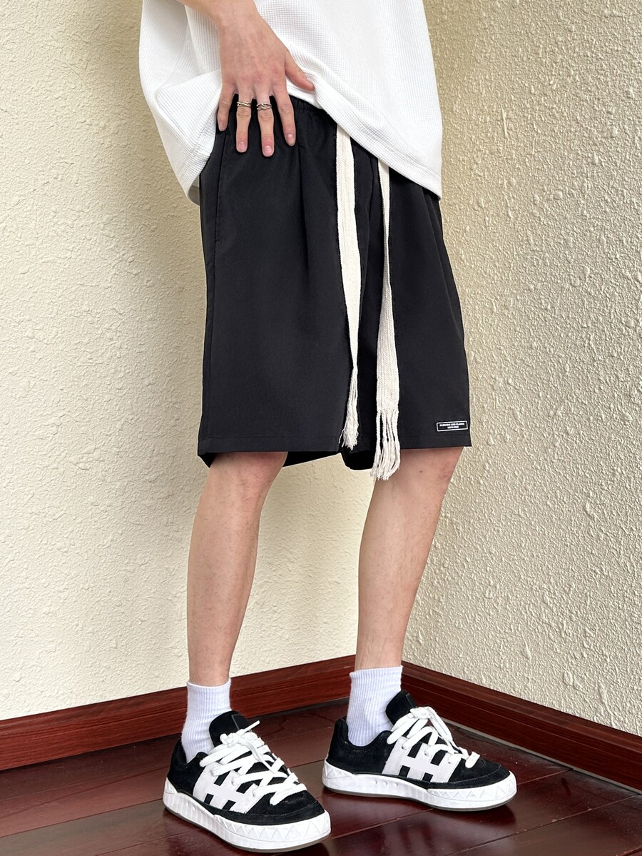 Guys Letter Patched Detail Drawstring Waist Shorts