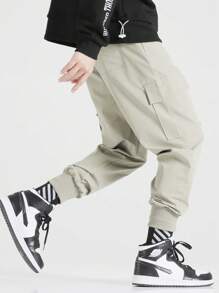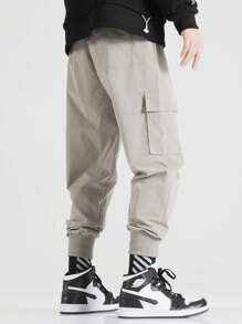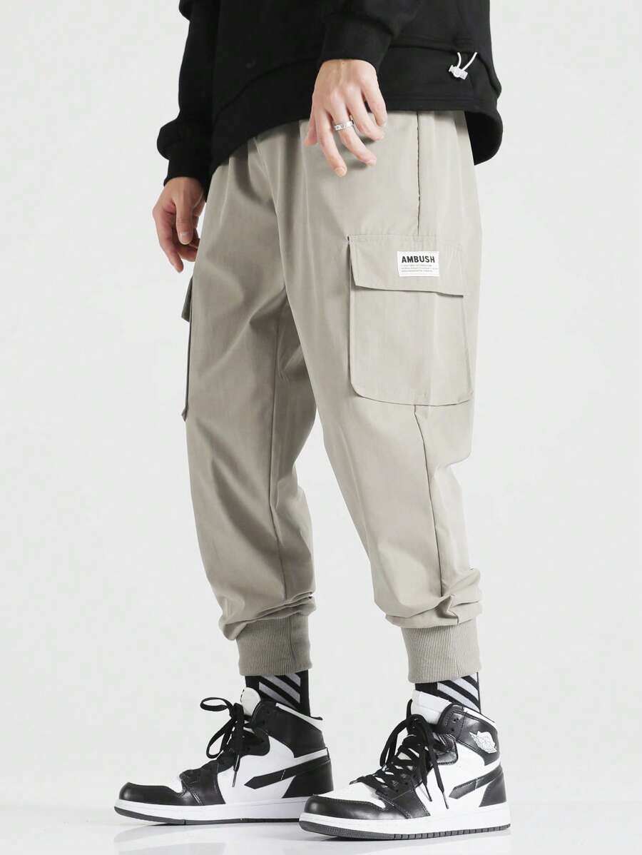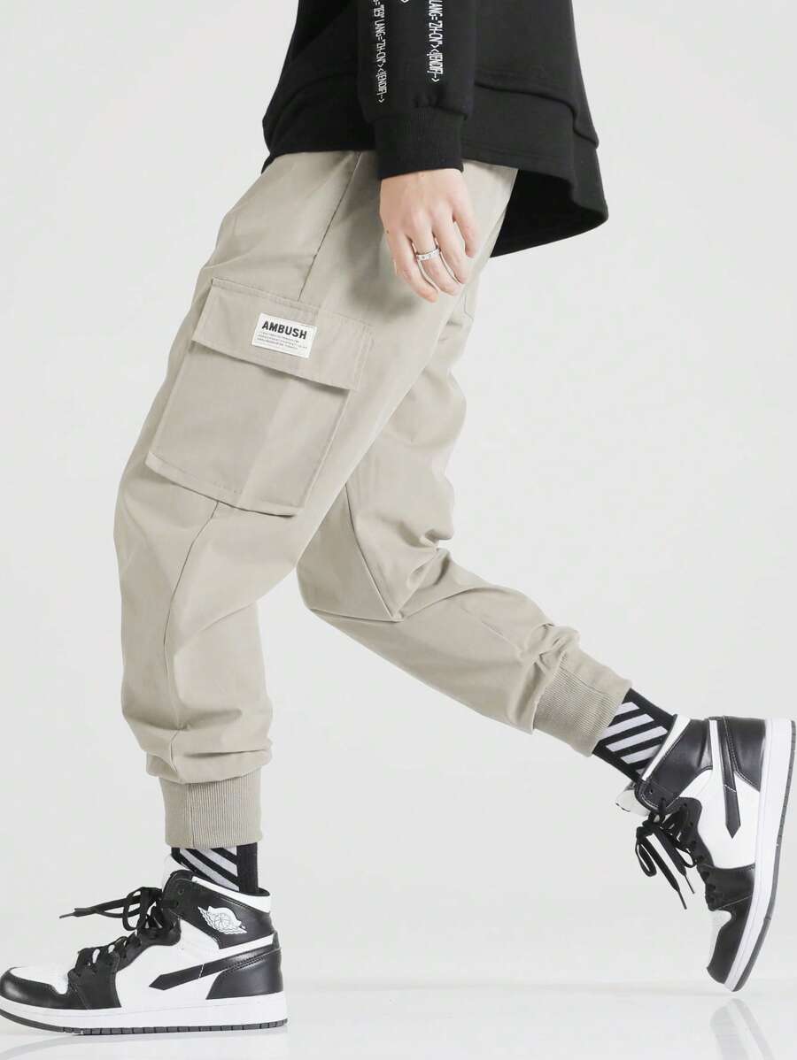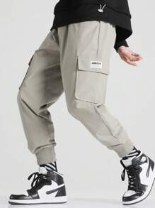 Guys Letter Patched Detail Flap Pocket Side Cargo Pants