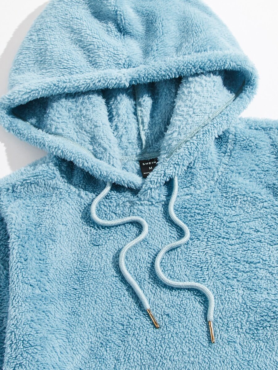 Guys Letter Patched Drawstring Flannel Hoodie & Pants