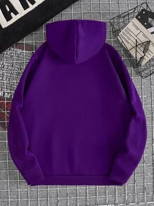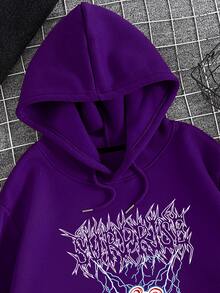 Guys Letter & Skeleton Print Kangaroo Pocket Drawstring Thermal Hoodie
