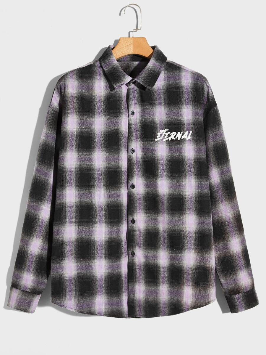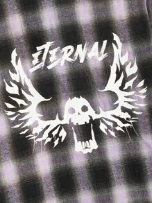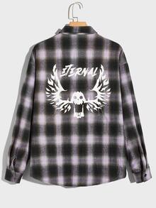 Guys Letter Wings Graphic Plaid Button Front Shirt